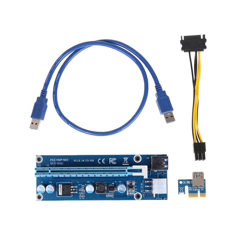 Удлинитель USB 3,0 PCI-E Express 1X 4x 8x 16x, карта адаптера SATA, 15-контактный штекер на 6-контактный кабель питания для майнинга BTC