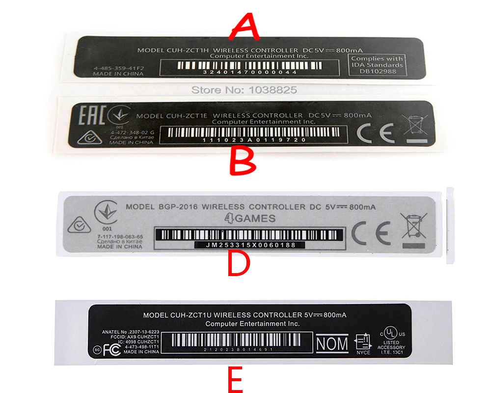 5 шт.лот для контроллера PS4, этикетка, корпус, тонкая черная задняя наклейка, этикетка, уплотнения, сделано в Китае