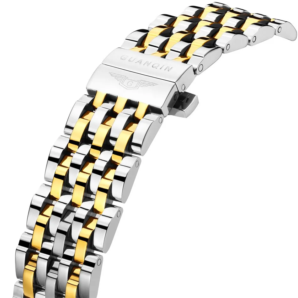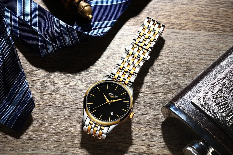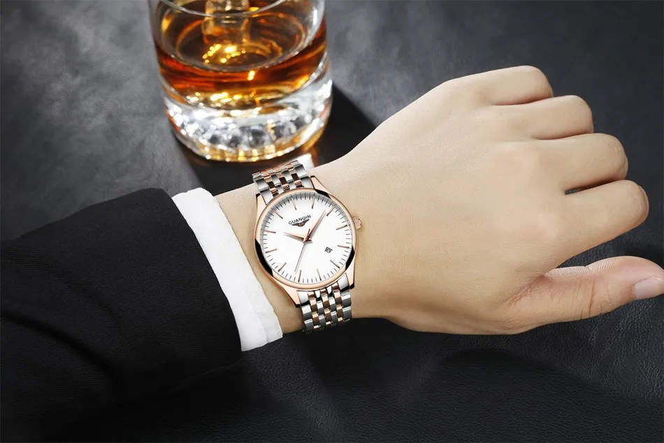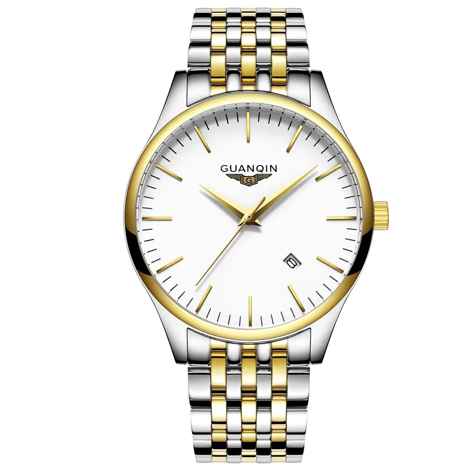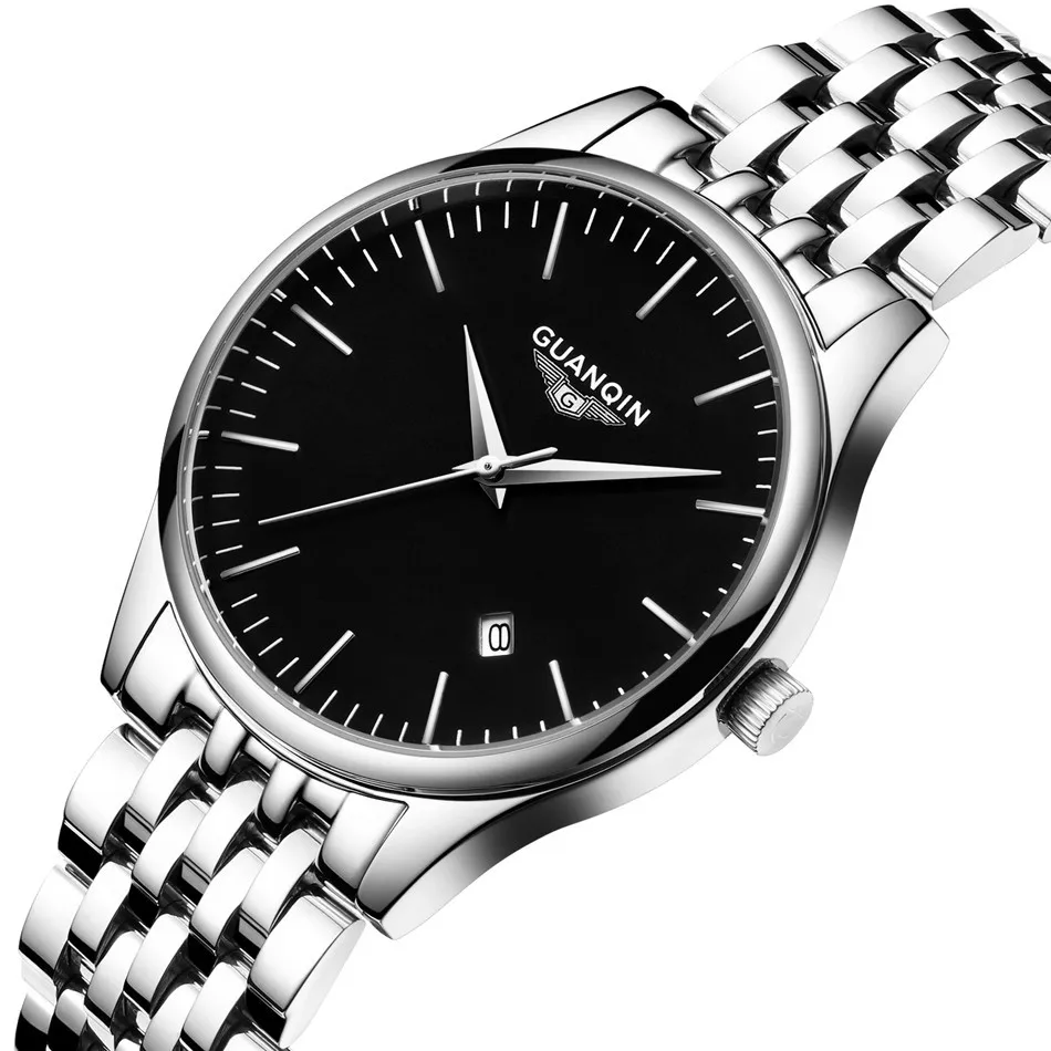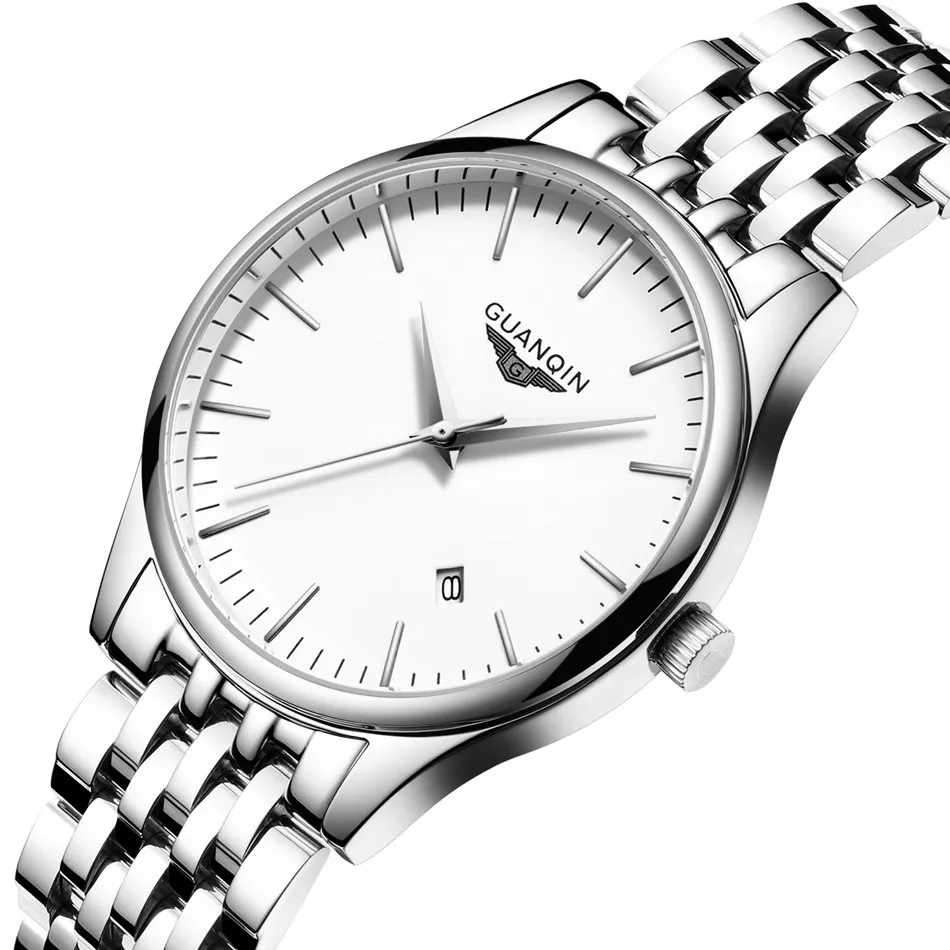 GUANQIN часы мужские модные наручные часы из нержавеющей стали водонепроницаемые кварцевые часы с календарем круглые Relogio Masculino reloje