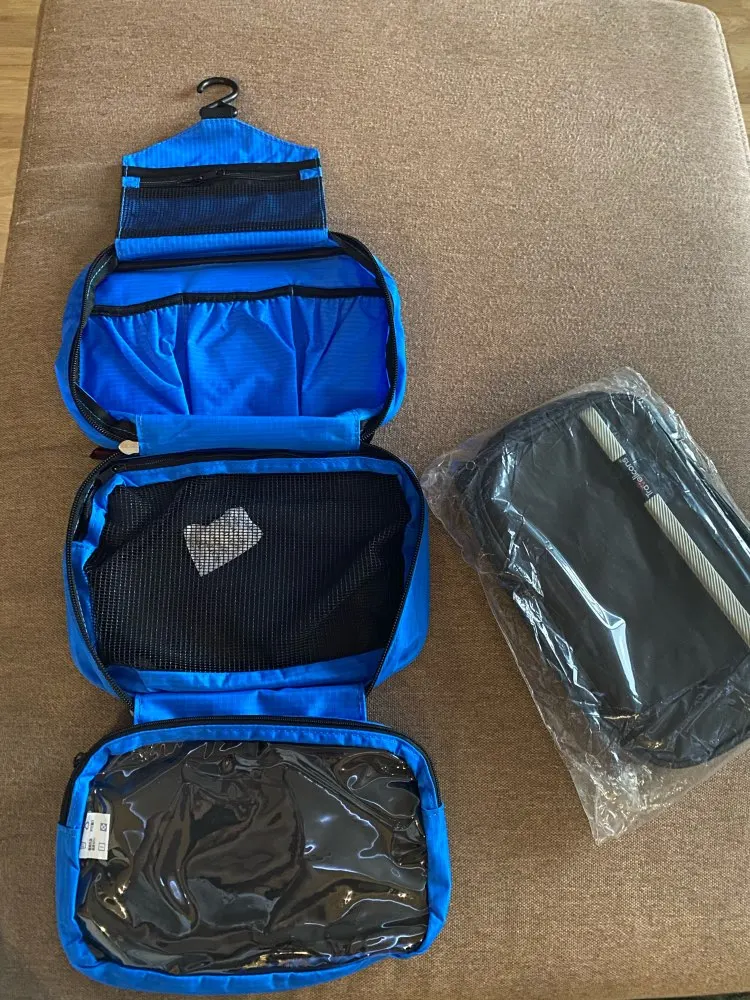 Пришли в Украину за 2 недели доставкой Meest. Качество в принципе неплохое. Заказала себе и мужу разного цвета. На первый взгляд показались маленькие по сравнению с моей прошлой. Но после наполнения косметичка таки закрылась) Достаточно компактная. С продавцом не общалась.