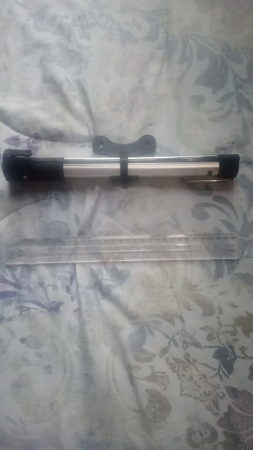 Список товаров для некоторых других моделей, как тот, который я получил (с волнами на рукоятке) составляет 84 грамма и растягивается только до 25 см. Он хорошо работает для клапанов presta и schrader. Не уверен, что он может достигать 7 бар (100 psi), но 5 кажется в пределах досягаемости, и этого достаточно для меня. Шланг очень удобный. Доставка во Францию в течение 10 дней.