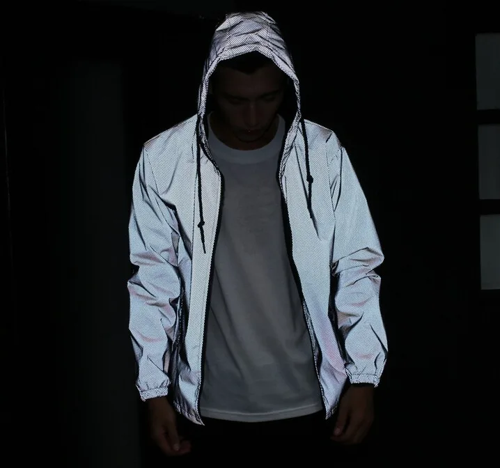 Ветровка Светоотражающая в стиле хип-хоп для мужчин и женщин, повседневная куртка с капюшоном для ночного спорта, флуоресцентная одежда, 2020