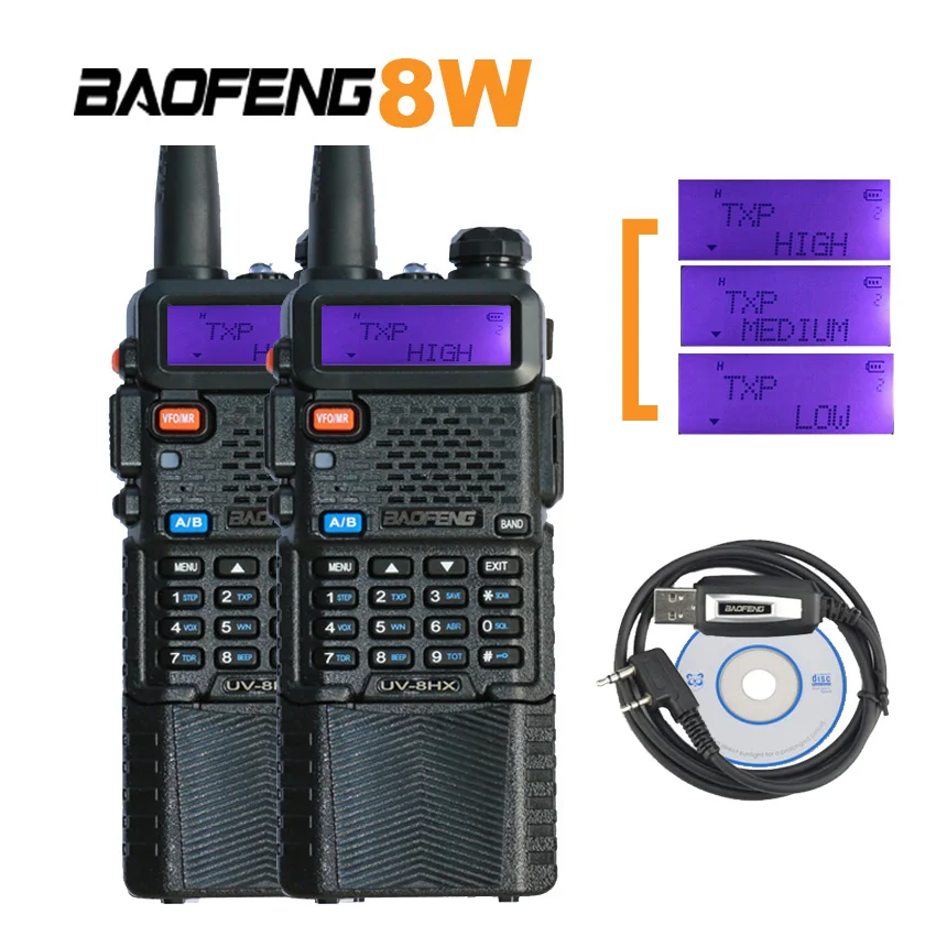 Пара раций Baofeng UV-8HX,uv-5r 8 Вт УКВ радио, sister baofeng gt-3tp gt-3 uv 5r yaesu vx-6r + кабель + sp + Автомобильное зарядное устройство$106,00/Лот