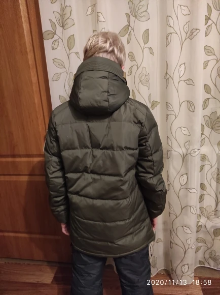 Крутой пуховик, тонкий но теплый не продувает, смотрится на сыне здорово. На рост 154 взяла размер 16 (рост 170). Есть запас, но это не заметно вообще, не смотря на то что ребенок худенький, попу куртка закрывает, на рукавах резинки манжеты, из за этого не сползают вниз. На две зимы хватит. С кофтой разумеется. Капюшон удобный, теплый. Якутские зимы очень холодные, пока начало ноября и на улице ниже -15 не опускалась температура. Но сын говорит что ему тепло. Дополню отзыв как начнутся морозы в -45,-50, т.к. в школу все равно придется ходить ребенку. Надеюсь что не будет мёрзнуть.