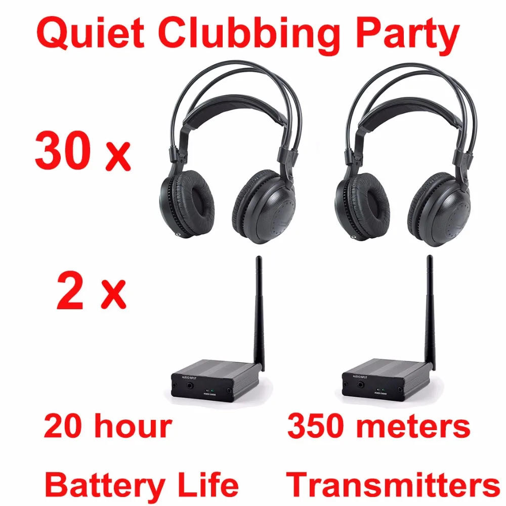 Профессиональные бесшумные беспроводные наушники Disco compete system, тихий комплект для клубов и вечеринок (30 наушников + 2 передатчика)