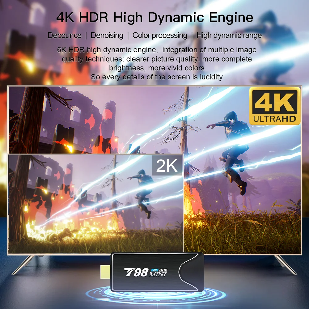 ТВ-приставка T98 Mini 4K, Android 10,0, HDR, H.265, 2 + 16 ГБ, Bluetooth 4,0