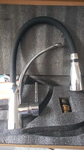 Кран очень красивый. Материал черного цвета, который кажется резиновым, хороший! Все еще не установлен.
