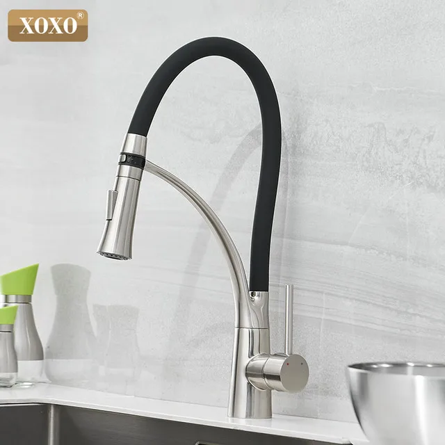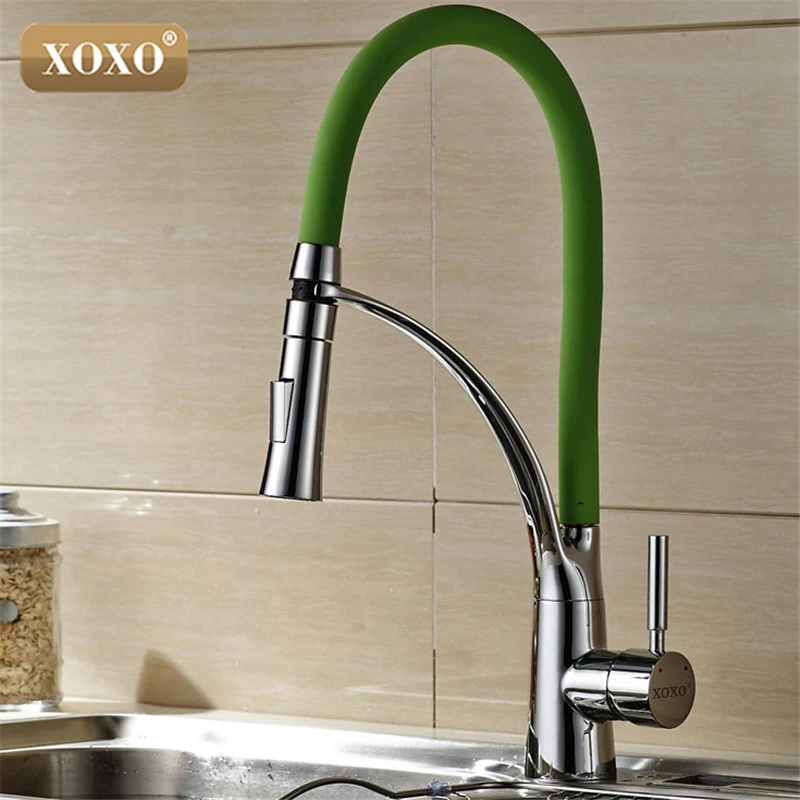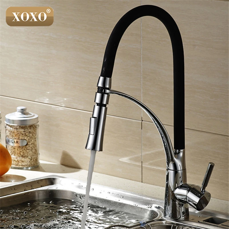 Светодиодный кухонный кран XOXO с резиновой конструкцией, хромированный смеситель для раковины, выдвижной смеситель с одной ручкой и креплением на раковину, 83013