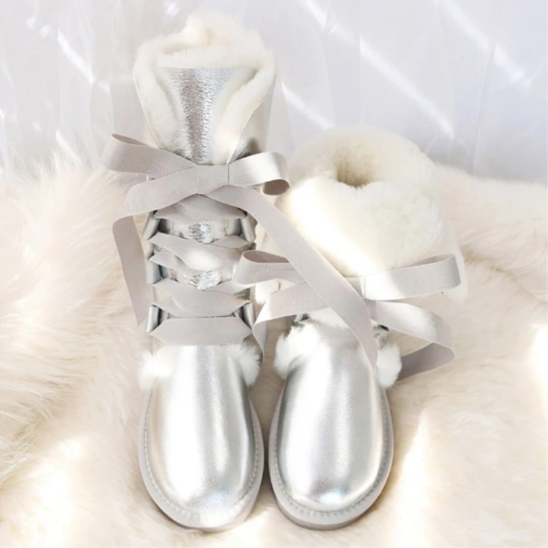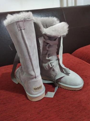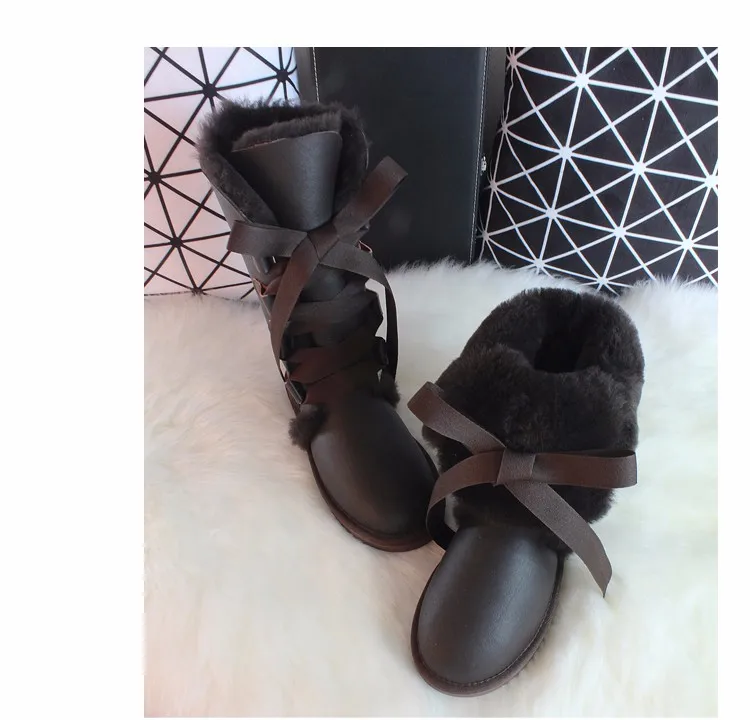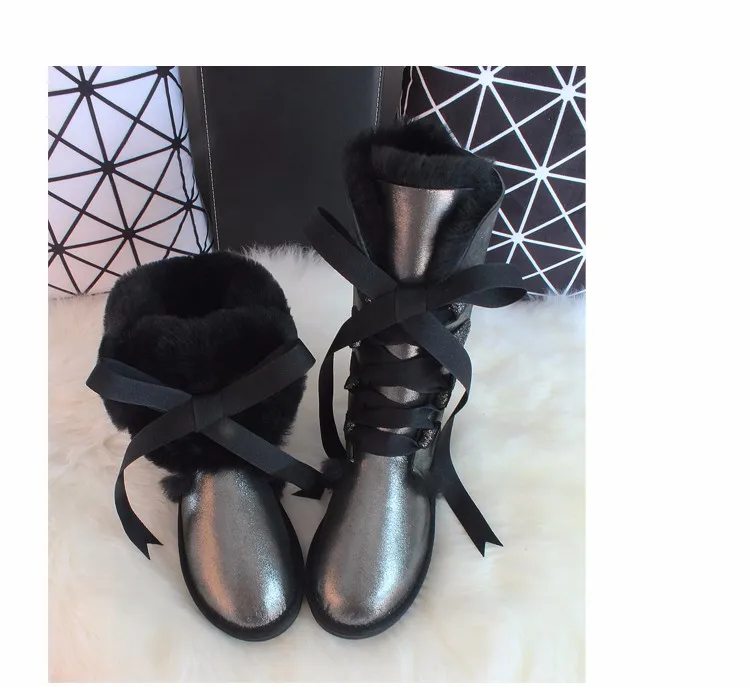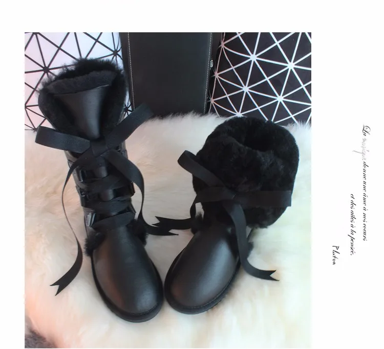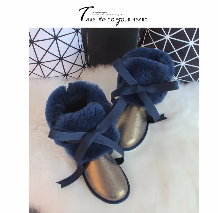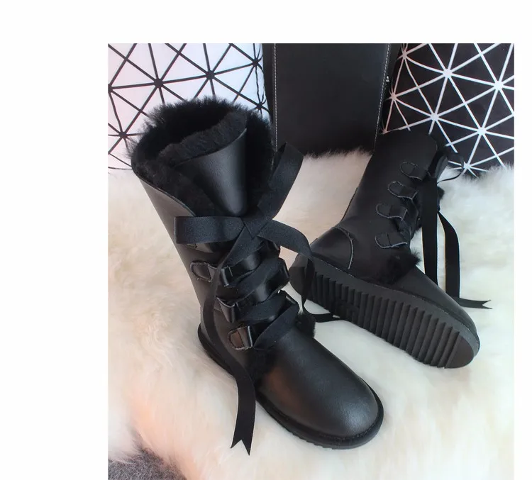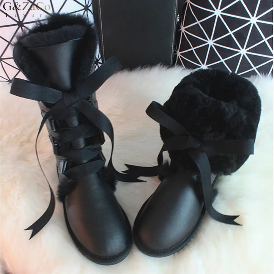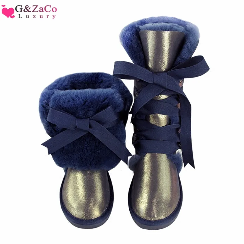 G Zaco, Роскошные зимние сапоги из овечьей кожи, австралийские сапоги до колена, из натуральной шерсти, сапоги на овечьем меху, женские длинные сапоги на плоской подошве с бантом