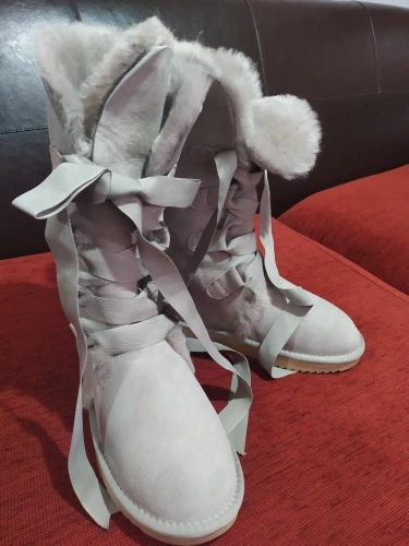Все в соответствии с описанием. Как на фото. Очень миленькие, густой мех. Оперативная доставка. Как по мне, то большемерят, нужно заказывать меньше на размер, чем в размерной сетке Продавца. Спасибо за подарочек в виде беленьких стелек для обуви. Продавца рекомендую!