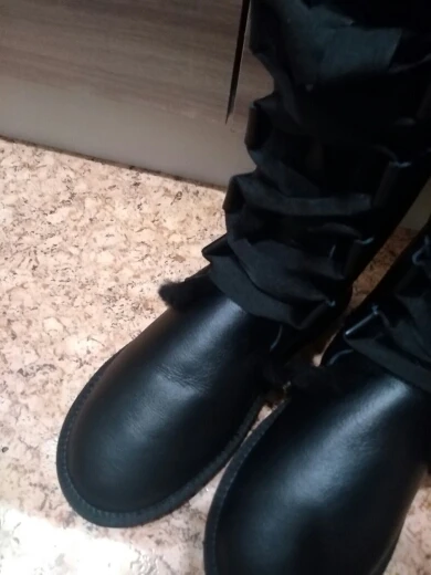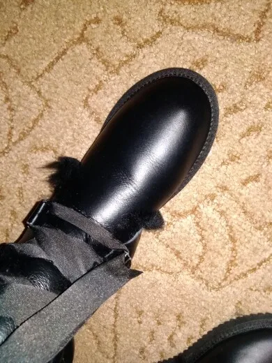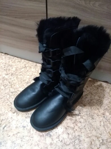 сначала произвели неоднозначное впечатление, сверху кожа очень странная, похожа как будто какой то кож.зам либо кожа но очень тонкая, не понятно «чья». Заломы быстро появляются, не знаю на сколько их хватит,решила оставить. сегодня надела как раз в мороз -34, ну во первых не скользящие, даже наоборот рефленная подошва помогает тормозить во вторых очень теплые, это самое главное, мех натуральный это 100%, подожгли даже в целом смотрятся неплохо, ноге комфортно. у меня 40 размер. взяла 11, прям небольшой запас есть, в 10 размере думаю палец бы упирался. Что ещё сказать, этикетку по моей просьбе не пришили, спасибо! угги огонь!