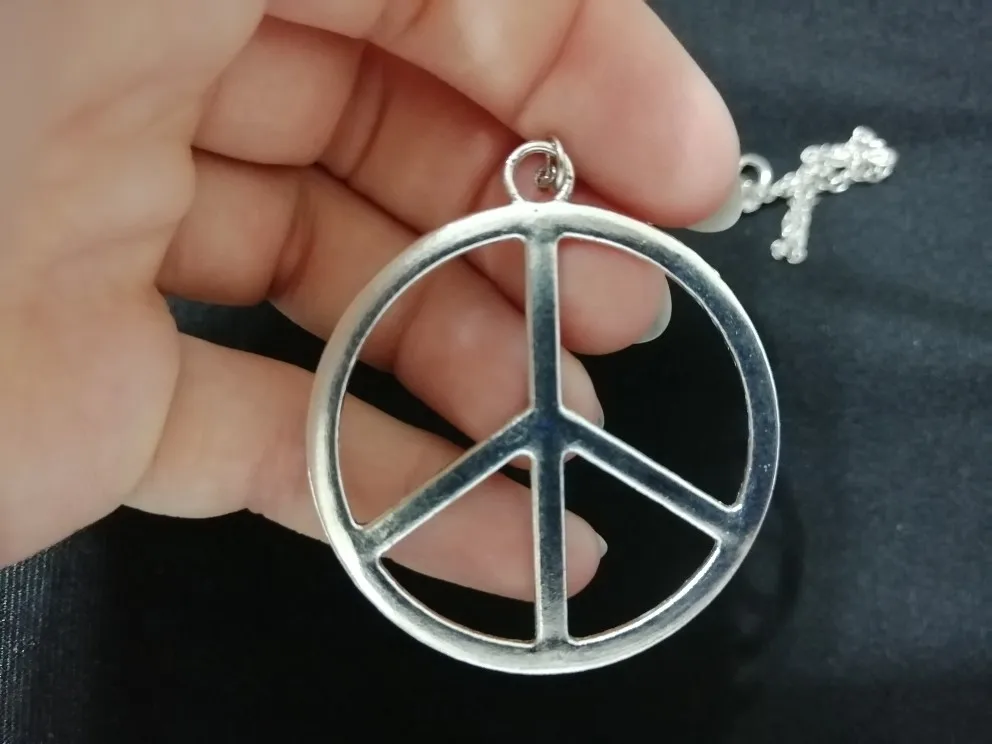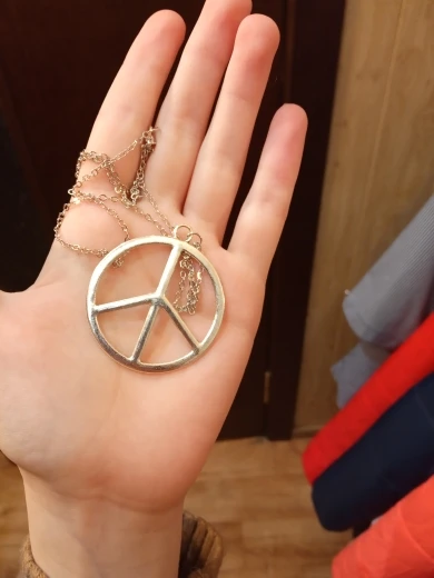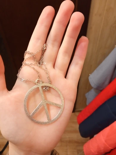 заказывал 2 одних и 1 другую, пришло 3 одинаковых. пофиг, цепочка норм, хотя немного хлипкая. сам символ мира норм, прочный. короче прикольная безделушка. всем мир!