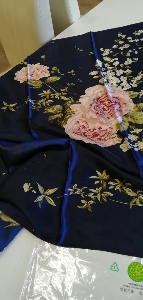 Женские квадратные шарфы BYSIFA, Темно-Синие китайские розы, большие элегантные аксессуары для женщин, 90*90 см