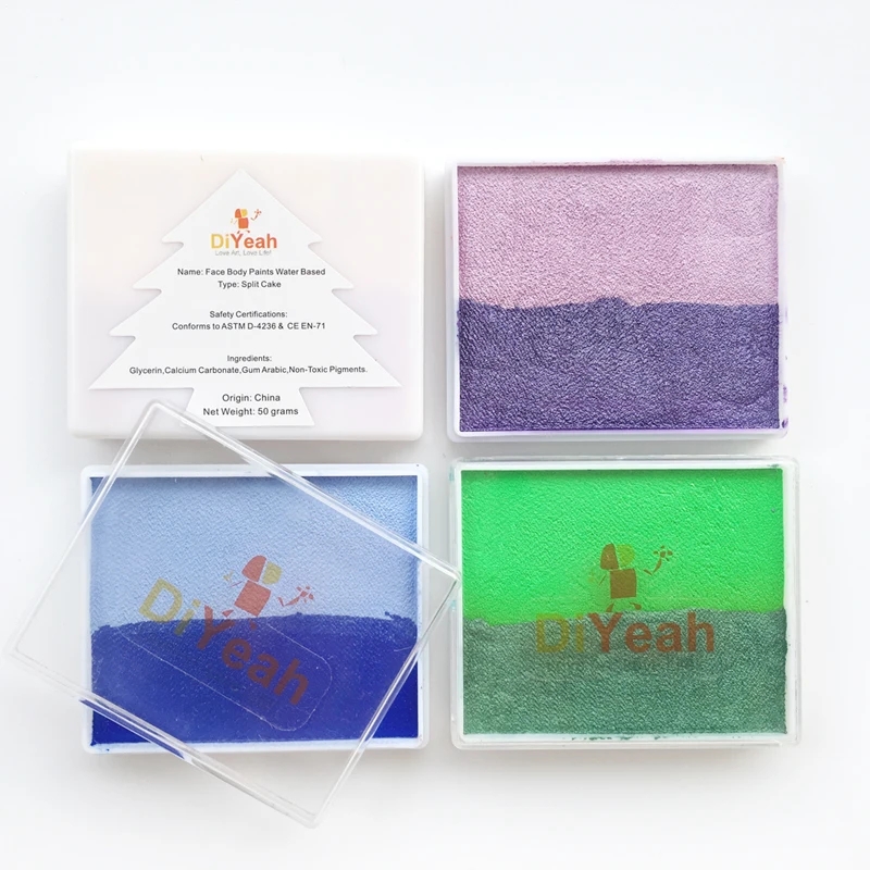Профессиональная двухцветная краска для лица и тела, пигмент для макияжа 50 гшт., многоцветная серия, боди-арт, для Хэллоуина, металлическая краска для лица