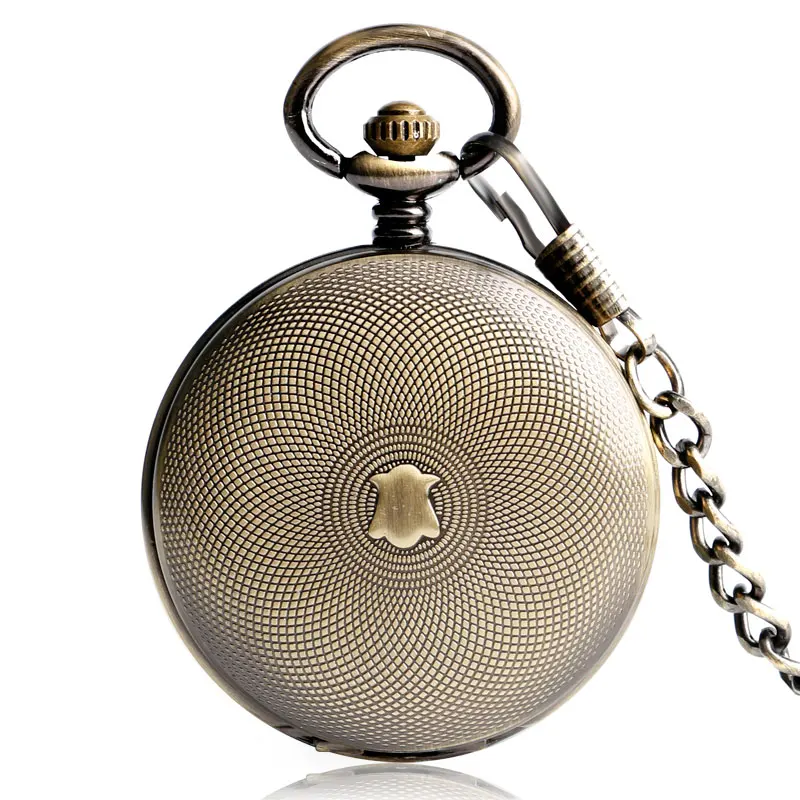 Карманные часы-брелок, механические Роскошные Бронзовые шикарные часы с ручным ветром, двойной охотник, полые римские цифры, часы-брелок, подарок, новый стиль
