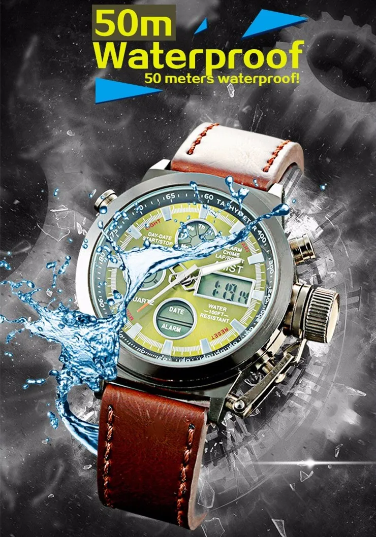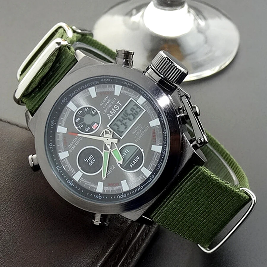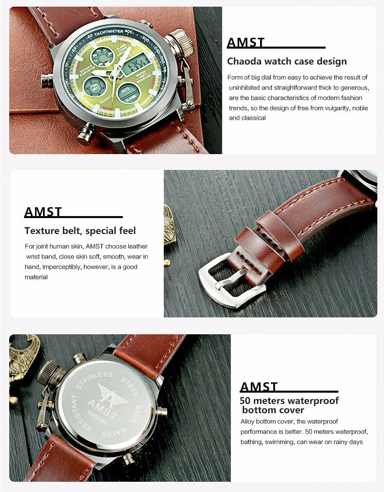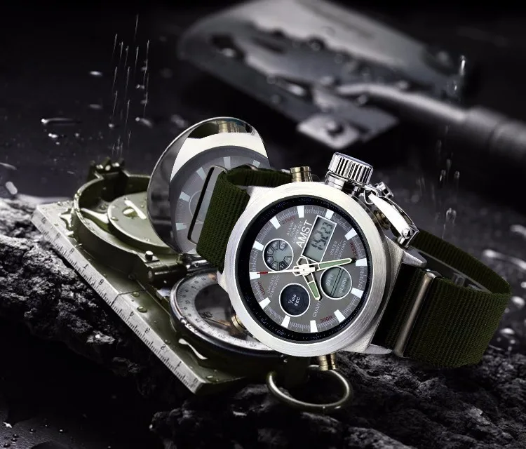 Мужские кварцевые часы AMST, спортивные, военные, цифровые, аналоговые, светодиодные, 5 АТМ, 50 м, 2021