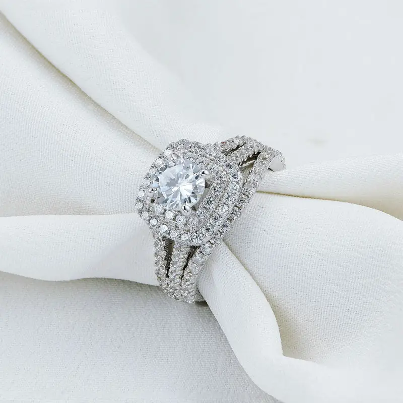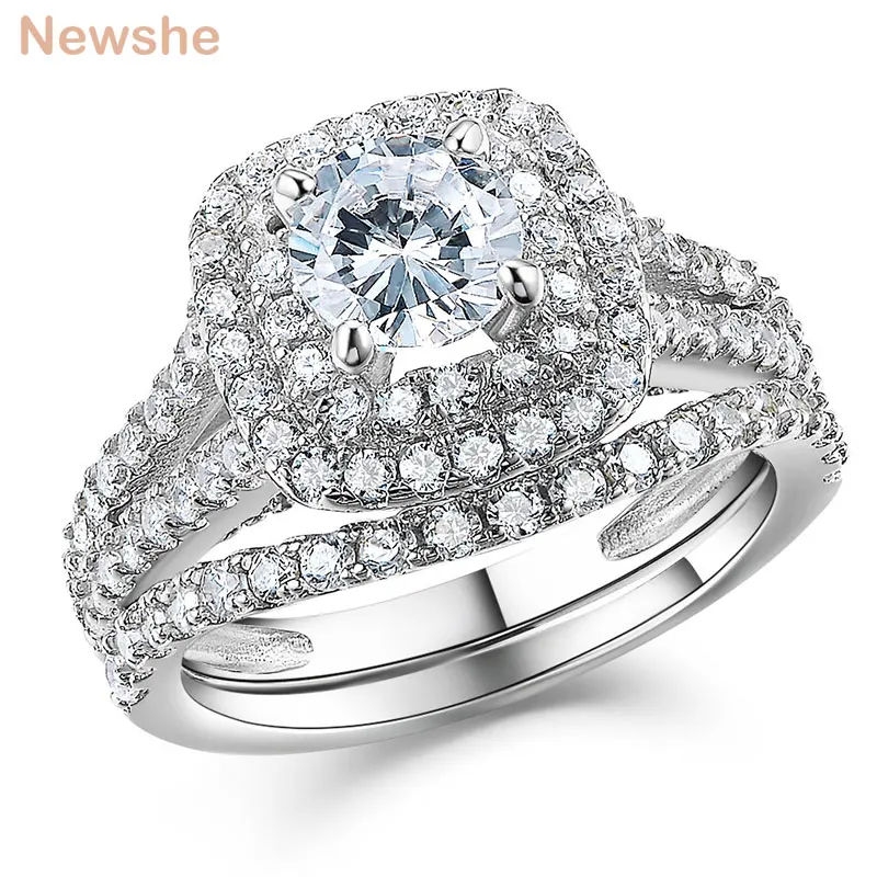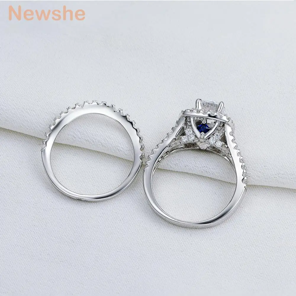 Женский комплект из 2 предметов Newshe, обручальное кольцо из стерлингового серебра 925 пробы с голубым сапфировым белым фианитом, размер 4-13