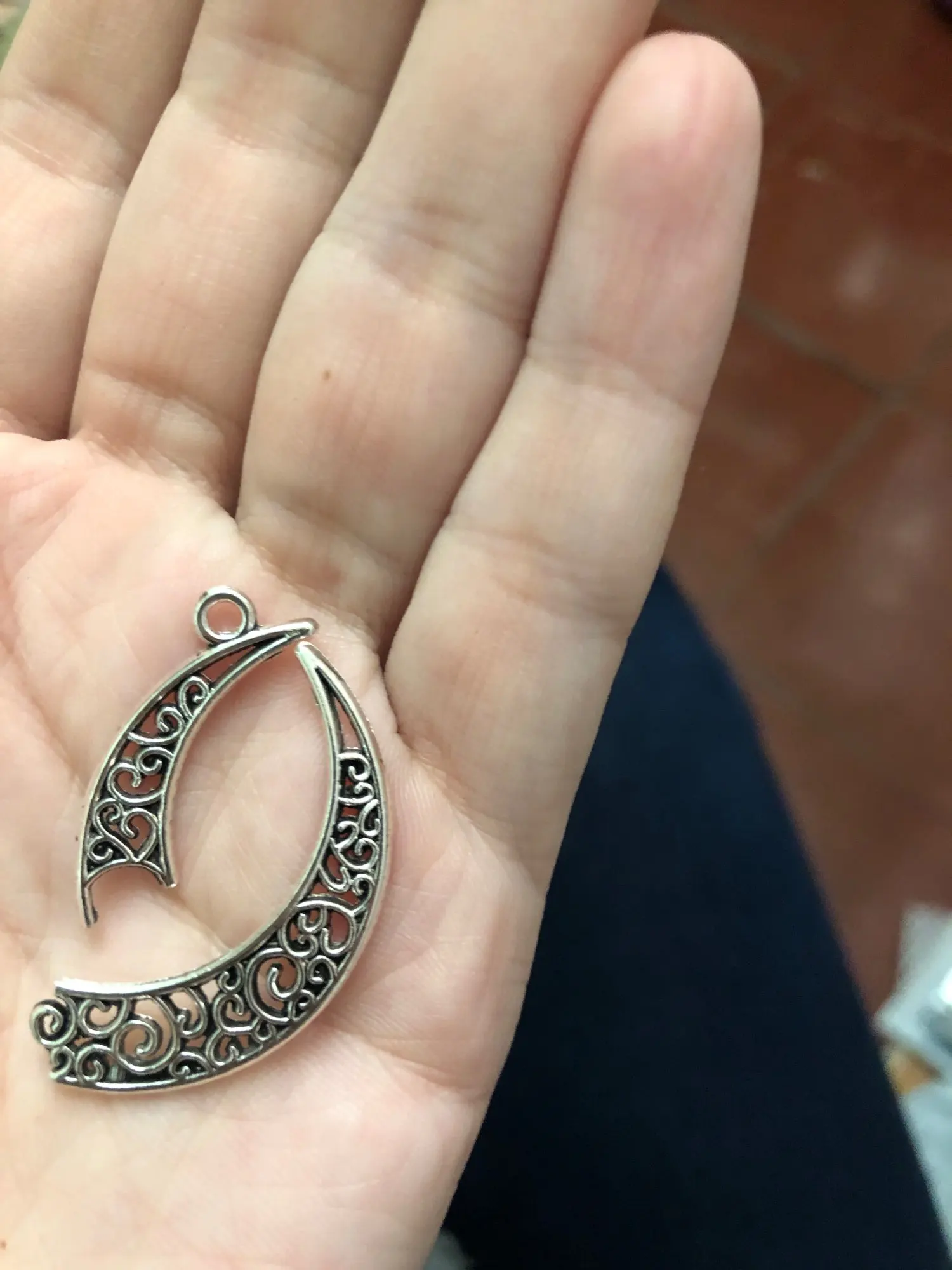 10 шт. винтажные тибетские посеребренные подвески в виде Луны, металлические подвески для самостоятельного изготовления ювелирных изделий ручной работы 41*31 мм L606