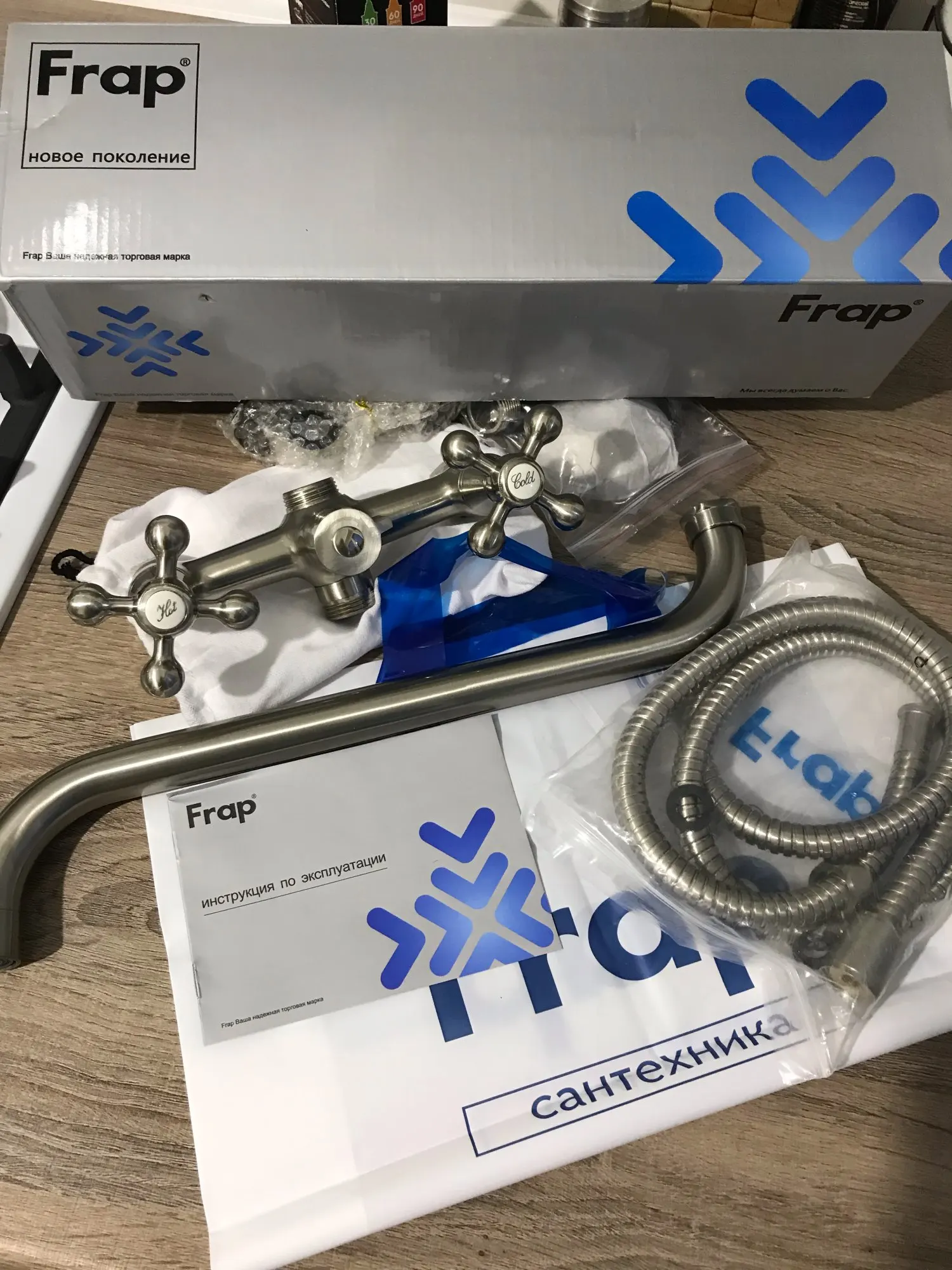 Смеситель красивый, полный комплект с коробкой и документами, пришёл сдэком. Сделан качественно, тяжелый, но смутили отгрызанные куски внутри. Продавец заверил, что всё будет работать. Надпись HOT мутноватая. Оставили, позже поставим и дополню отзыв