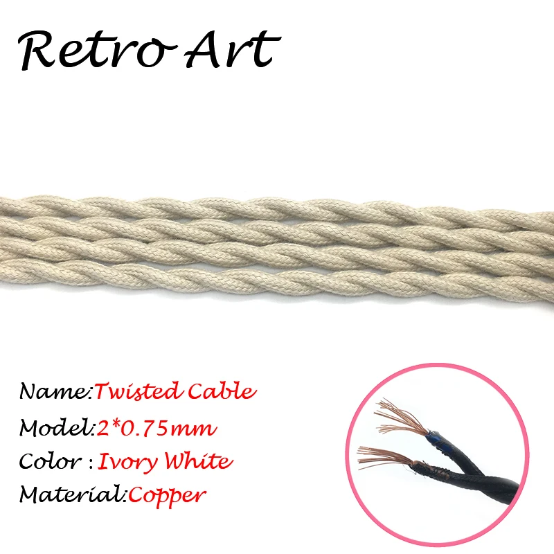 Кабель в винтажной оплетке, 2*0,75 мм, цвета слоновой кости, ретро Текстиль хлопок