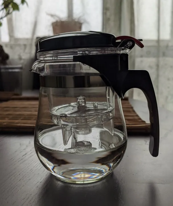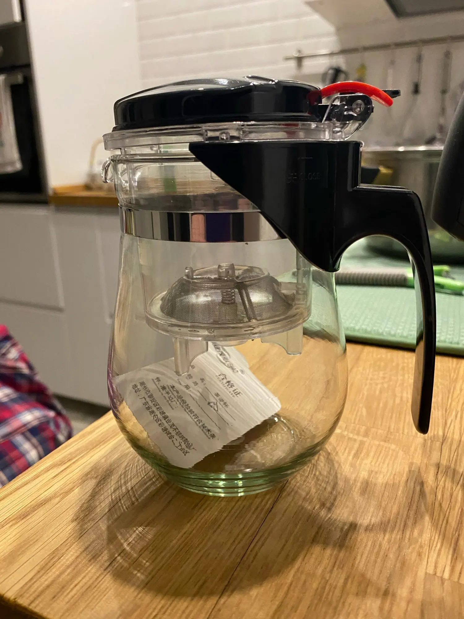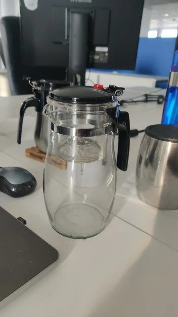 чайник очень удобный, 750мл хватает на три пролива подряд. качество не очень высокое, хлипковат, но все работает, на сетке заварника есть следы клея
