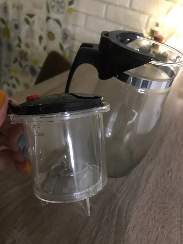 Заказываю третий чайник. У всех одна беда - еле течёт. Полминуты один пролив надо ждать. Неужто нельзя подъём клапана сделать побольше? С кнопкой ещё подшаманил, подточил её в одном месте, чтоб глубже опускалась - стало намного быстрей. А с рычагом пока не могу придумать, как доработать. И большая стеклянная колба отдельно нигде не продаётся. Разбилась - всё, заказывай новый чайник. Причём, маленькая пластиковая отдельно продаётся.
