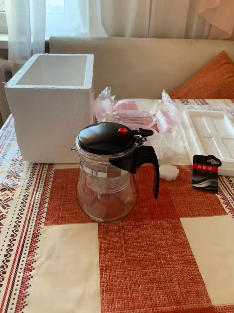 Очень удивляют отзывы людей, которые пишут, что чайник маленький или хватает на один раз заварить, или то, что плотно не фиксируется вставная колба. Так вот специально для таких людей скажу, подобный чайник рассчитан, чтобы в него заваривали настоящий листовой китайский чай, а не мусорный чай из продуктового магазина. Особенность такого чайника такова - засыпал китайский чай, залил горячей водой (не кипятком), немного настоялся, нажал на клапан и пролил. Снова залил горячей водой в эту же заварку, настоялся и пролил, а потом уже и по кружкам разлил. Снова залил горячей водой, настоялся и пролил. Поэтому, такой чайник называется ПРОЛИВНОЙ. Только китайский чай, способен завариваться по несколько раз, т.к. с каждым разом раскрывается аромат и вкусовые качества чая. Лично я чайником довольна. До Москвы посылка дошла, за пару недель и очень быстро на удивление. Упаковано достаточно хорошо. Отзыв написала не сразу, а после недели использования. Всё работает отлично.