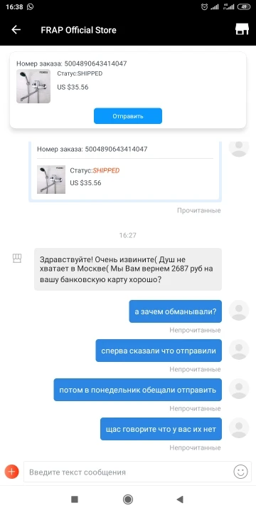 3 недели доставка из Москвы в Москву, заказанной позиции не было, выяснилось после недели переписки. Кран по итогу пропускает при использовании душевой лейки, течёт маленькая струя. Магазин отвечает на запросы в течение суток, поддержка работает, но открывать спор не вижу смысла-бестолку. На фик такую лотерею