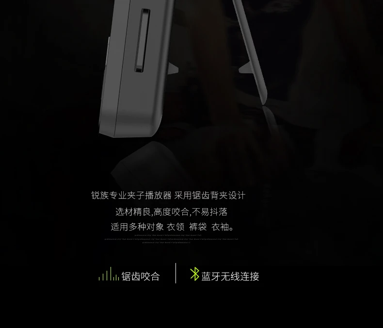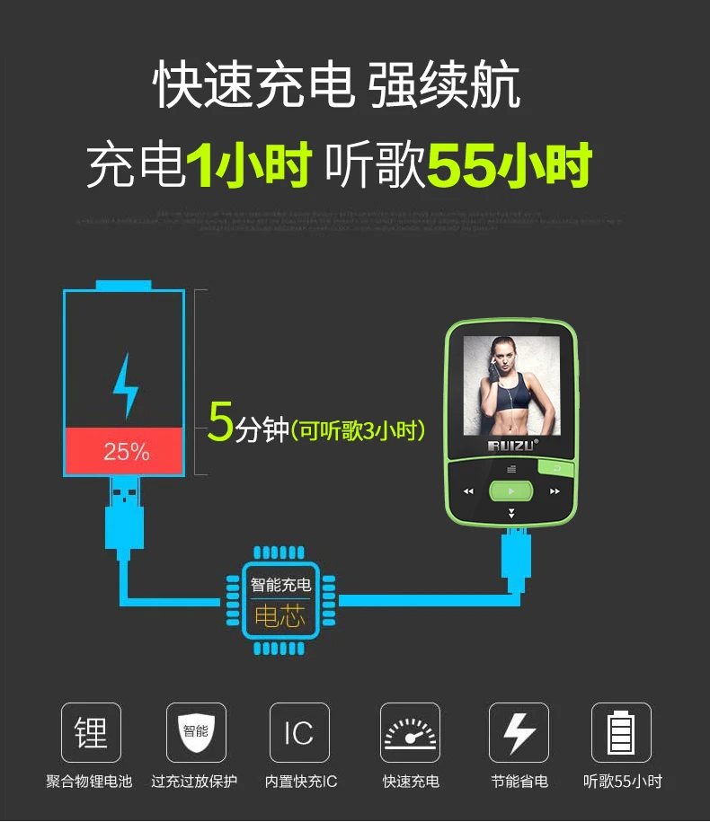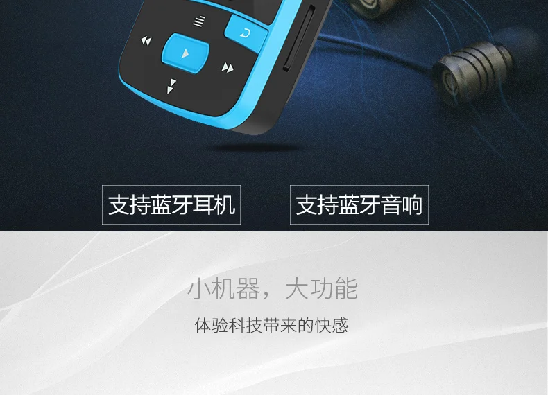 Характеристики:Бренд: RUIZUНомер модели: X50Версия Bluetooth: V4.1Эффективное расстояние деления BT: до 10 метровПамять: 8 Гб (USB 2,0 для сверхбыстрой передачи)Поддержка карт: карта TF 128 ГБ/Micro SD максимумЭкран дисплея: 1,5 дюйма, 128*128, TFT-экранСкорость укуса MP3: 8K bps-320K бит/сСкорость укуса WMA: 5K bps-382K bpsЧастота укуса WAV: ADPCM 32K bps-382K бит/с; PCM 128K bps-1536K бит/сСкорость укуса FLAC: 700K, bps-1200K бит/сСкорость укуса APE: 500K, bps-1000K бит/сАккумулятор: встроенный литиевый аккумулятор 3,7 в, 300 мАчВремя воспроизведения музыки MP3 WMA: около 55 часовВремя воспроизведения видео AVI: около 8 часовПорт зарядки: Micro USBАудиоплеер: MP3, WMA, WAV, AAC, APE, FLACВидеоплеер: AVI, AMVПросмотр фотографий: JPG, BMPЭлектронная книга: ПоддержкаFM-радио: ПоддержкаЗапись голоса: ПоддержкаРазмер изделия:58*37*16 ммВес изделия: 25 г