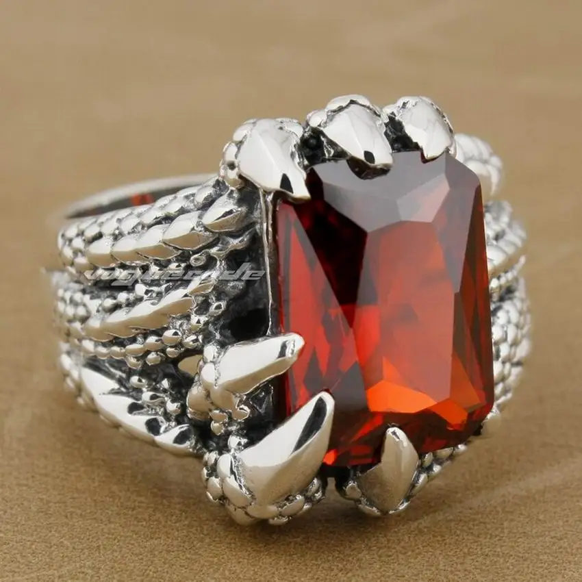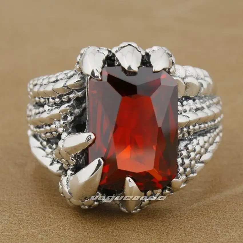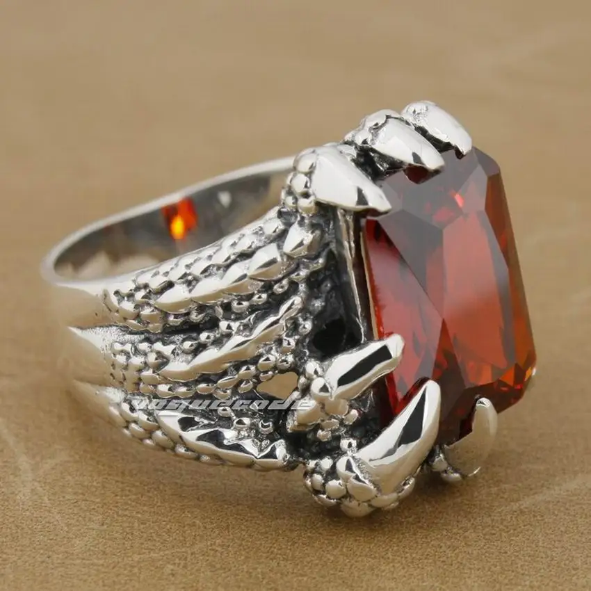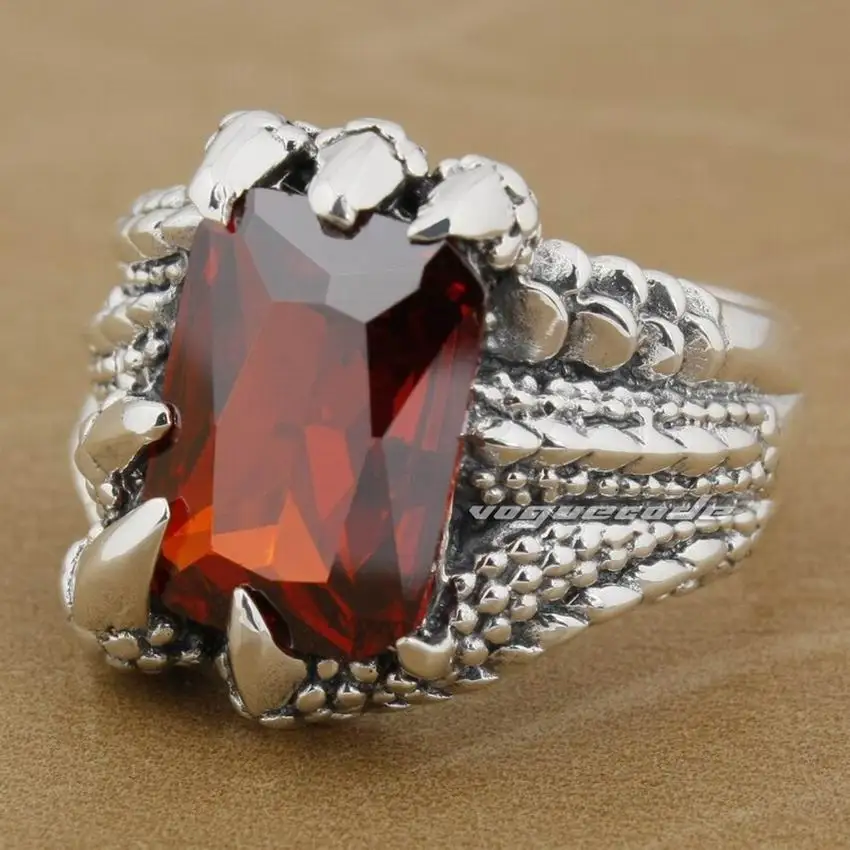 925 пробы серебро коготь дракона камень CZ Мужская Байкер Рокер панк кольцо 8E006 нам Размеры 7 до 14 лет