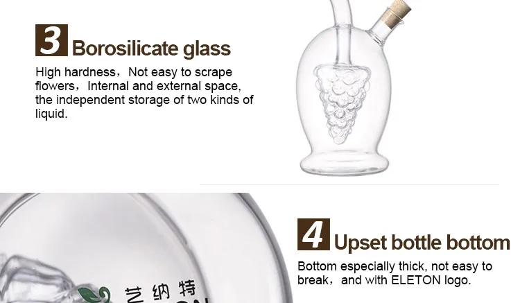 2:Изделия из стекла ручной работы, размер, форма, вес, толщина, есть небольшие различия в индивидуальном рисунке вытягивания, явление пузырьков-это нормальный процесс, не забывайте о покупке. Масленка небольшого размера, проверьте размер жестов. Выдувное горлышко, боросиликатное стекло. Кристально чистый. Масленка простая и практичная, герметичная.