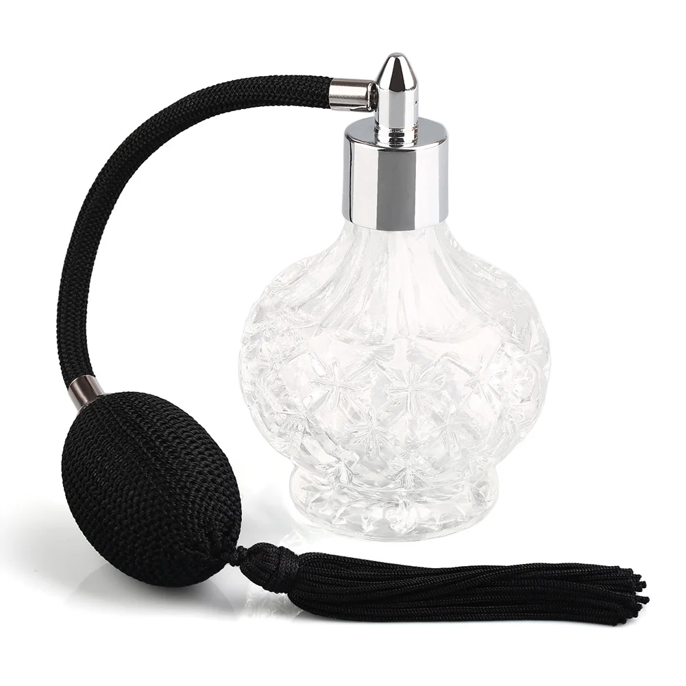 Винтажный хрустальный флакон для духов 80 мл, черная длинная лампа, распылитель, подарок для женщин