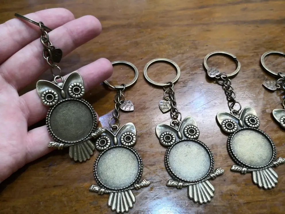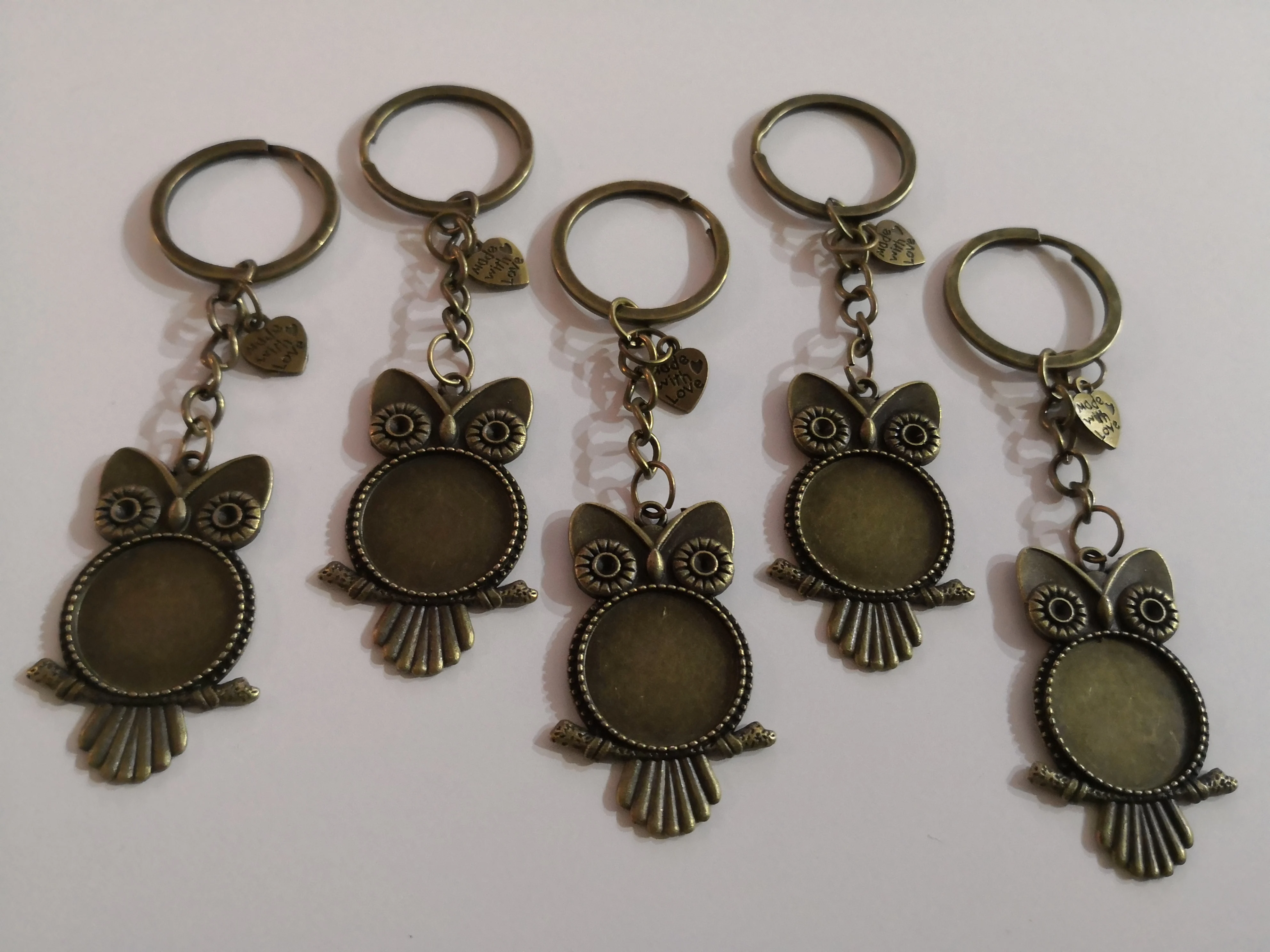 Металлический брелок для ключей сделай сам, 5 шт.лот, круглая сова, кабошон, винтажная цепочка для изготовления ювелирных изделий ручной работы Y1004