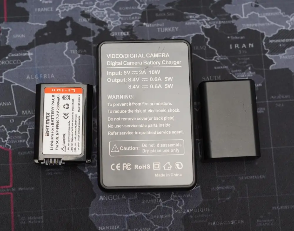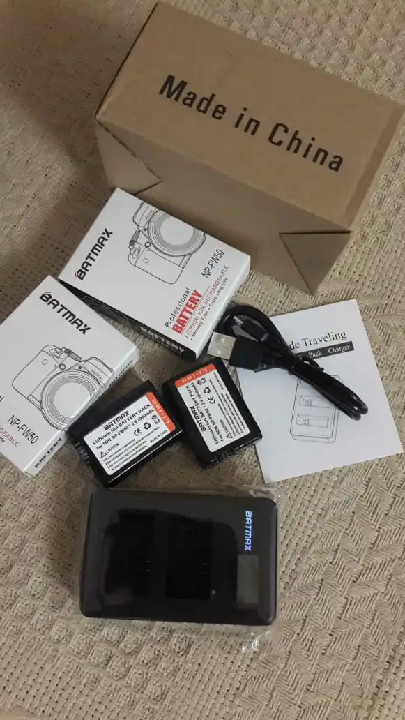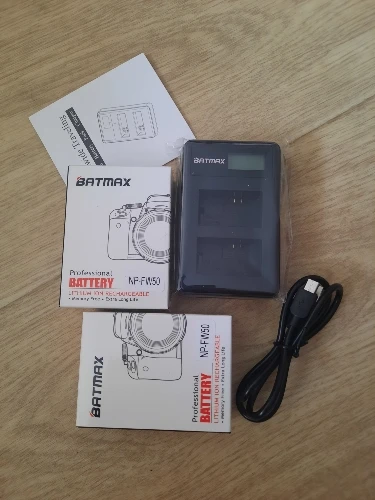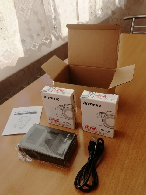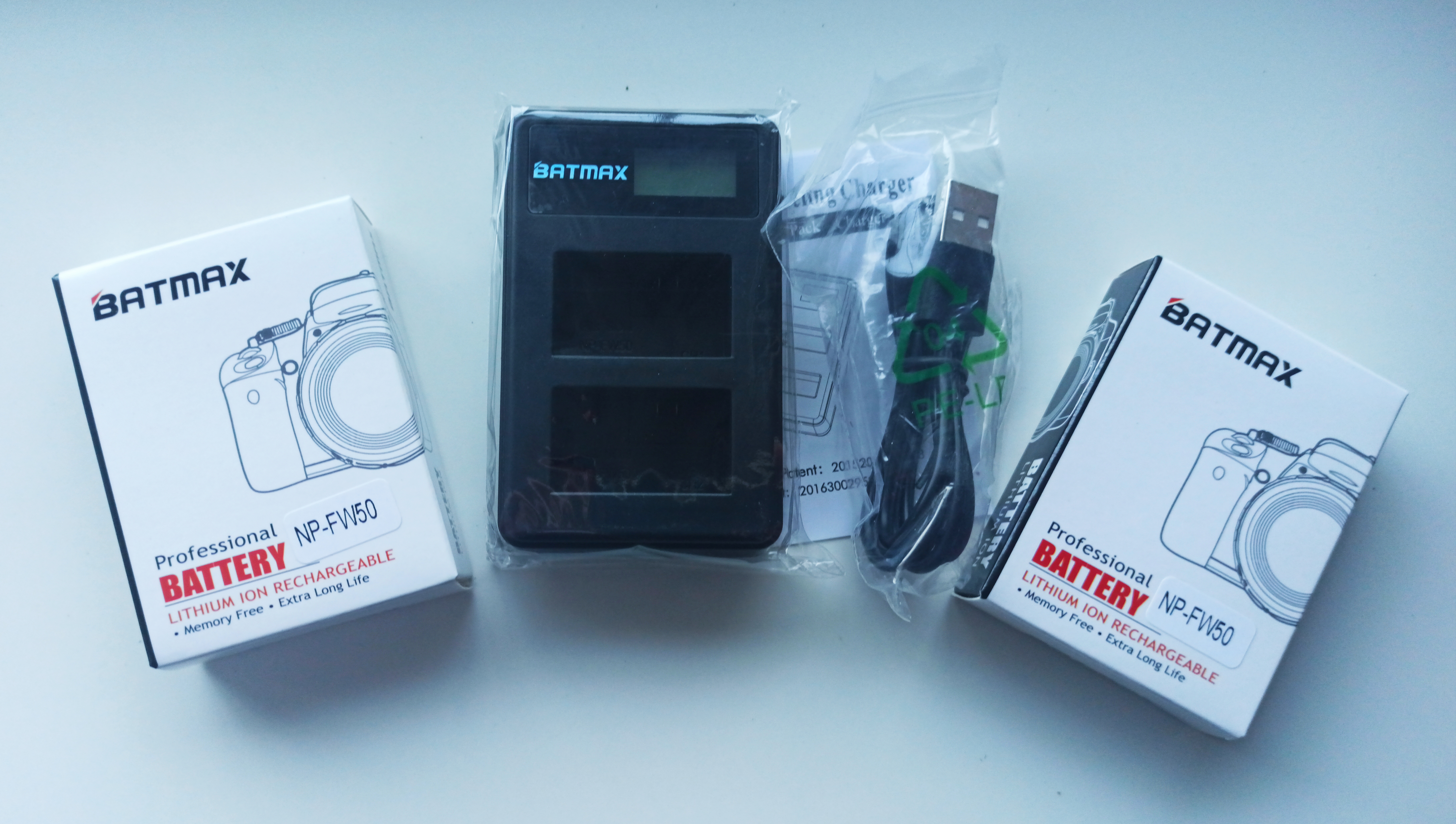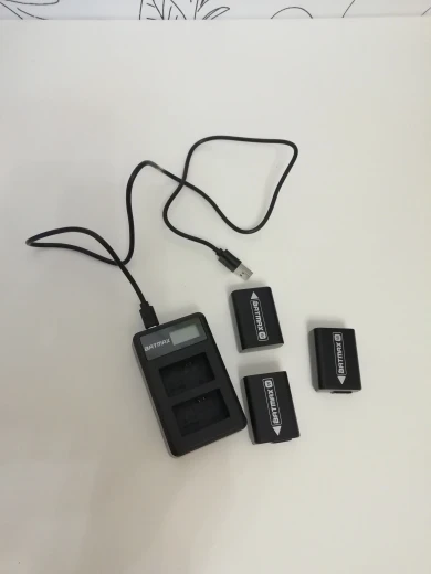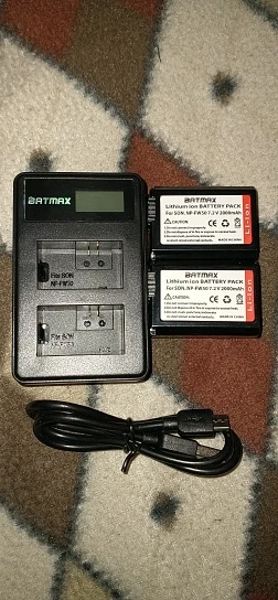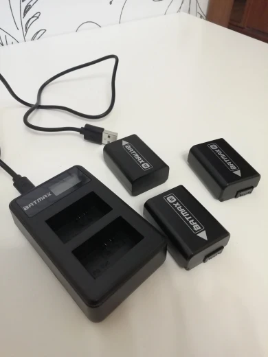 Отличная зарядка, на мой взгляд. Удобно заряжать сразу две батареи, к тому же она может работать от повербанка, что прям здорово! Можно с собой носить в сумке, и зарядить батареи где угодно. В комплекте я взял две батареи для своей Sony A37. Мощные, как раз то что мне и было нужно в замен оригинальной батареи, которая уже растеряла свою ёмкость и быстро садится.