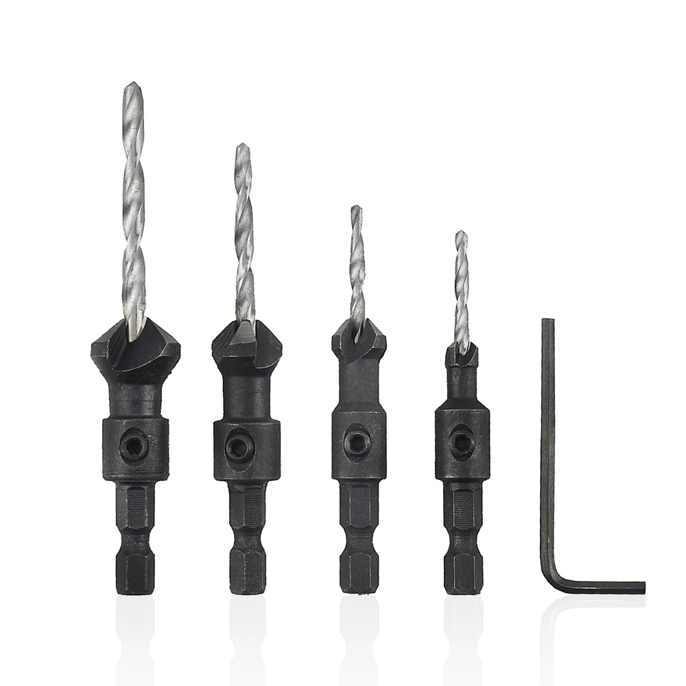 Набор сверл для зенковки по дереву, комплект из 5 насадок с шестигранным хвостовиком, для электрической резьбы по дереву