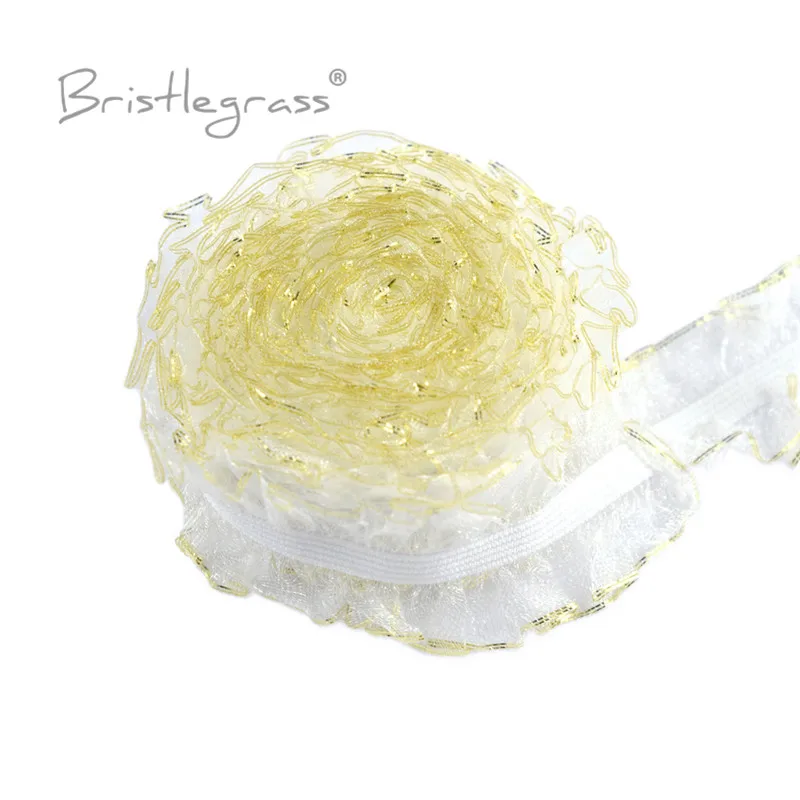 BRISTLEGRASS 5 Ярд золотые оборками кружевное платье с рюшами отделкой резинки ленты из спандекса повязки для волос резинки для волос Свадебное платье с юбкой-пачкой DIY Швейные понятия