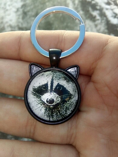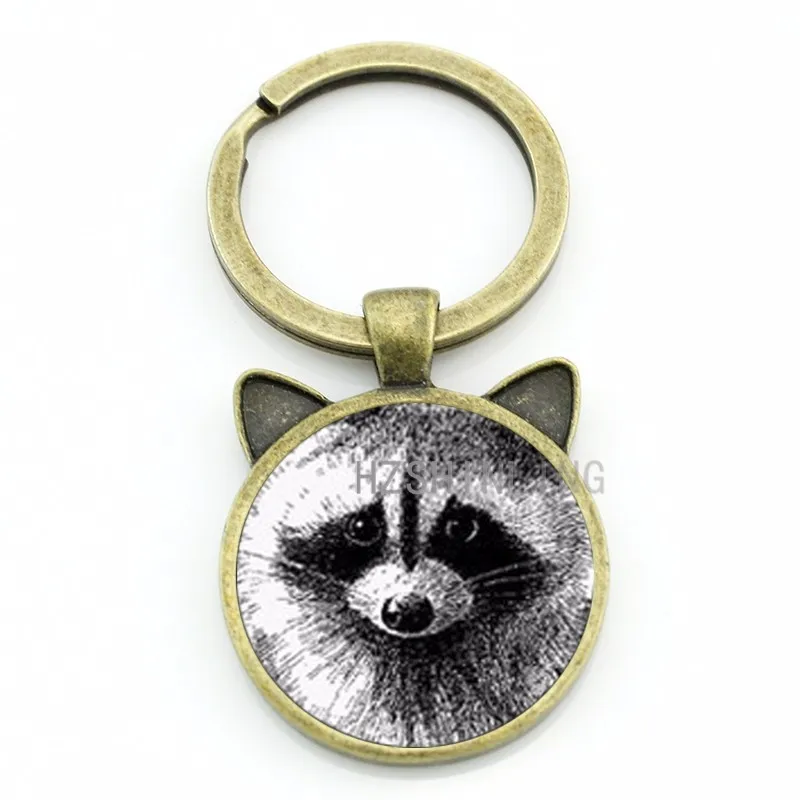 TAFREE винтажный очаровательный карандаш искусство енот брелок ретро Дикие животные стеклянный купол кошачьи уши брелок кольцо для ключей для мужчин женщин ювелирные изделия CN140