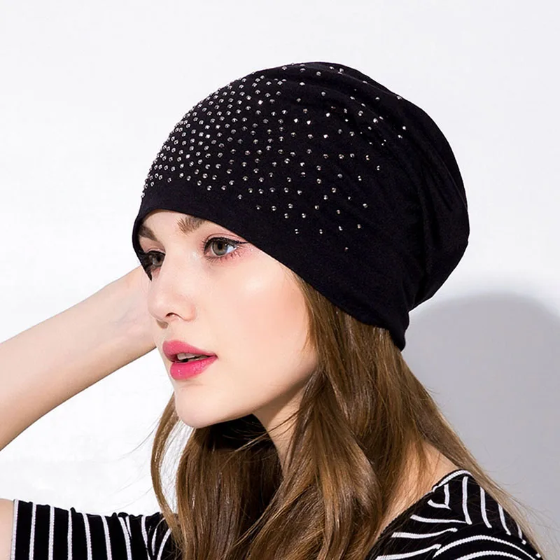 Gzhilovingl Весення женская шапка со стразами блеск вязаная зимняя шапка сплошной цвет маски шляпы женская шляпа шапка Gorro