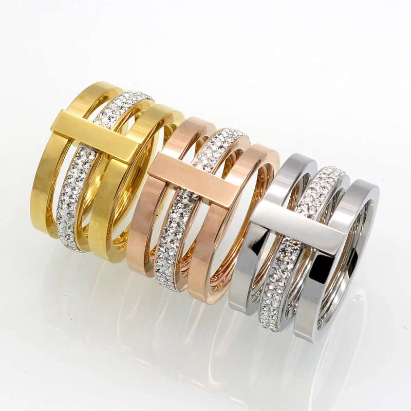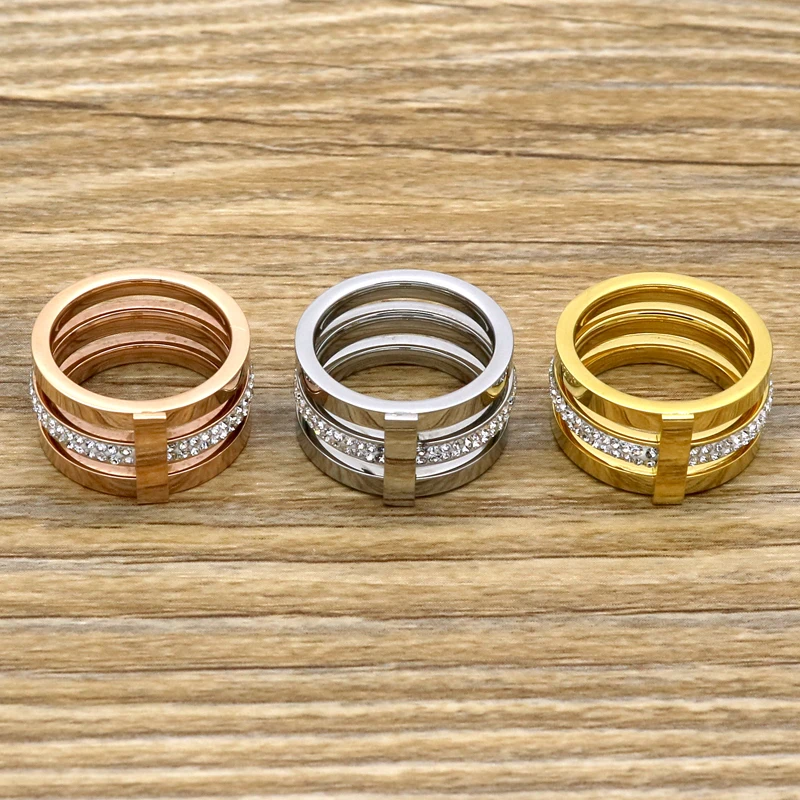 Кольцо из нержавеющей стали с титановым покрытием и трехслойным цирконием для мужчин и женщин, ювелирные изделия, аксессуары на заказ
