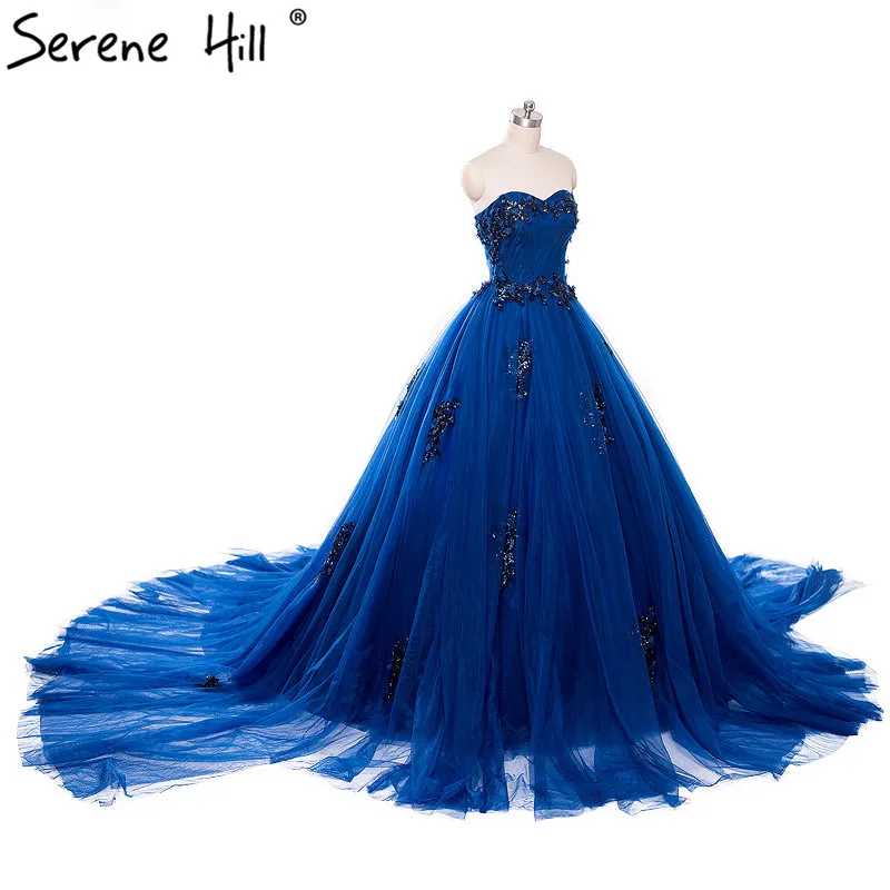 Голубое длинное свадебное платье для фотосъемки с длинным шлейфом, украшенное бусинами и тюлем, длинное сексуальное свадебное платье 2021, настоящая фотография, Serene Hill HA2010