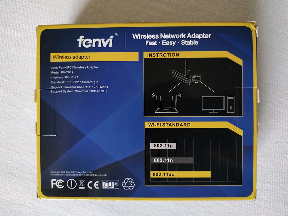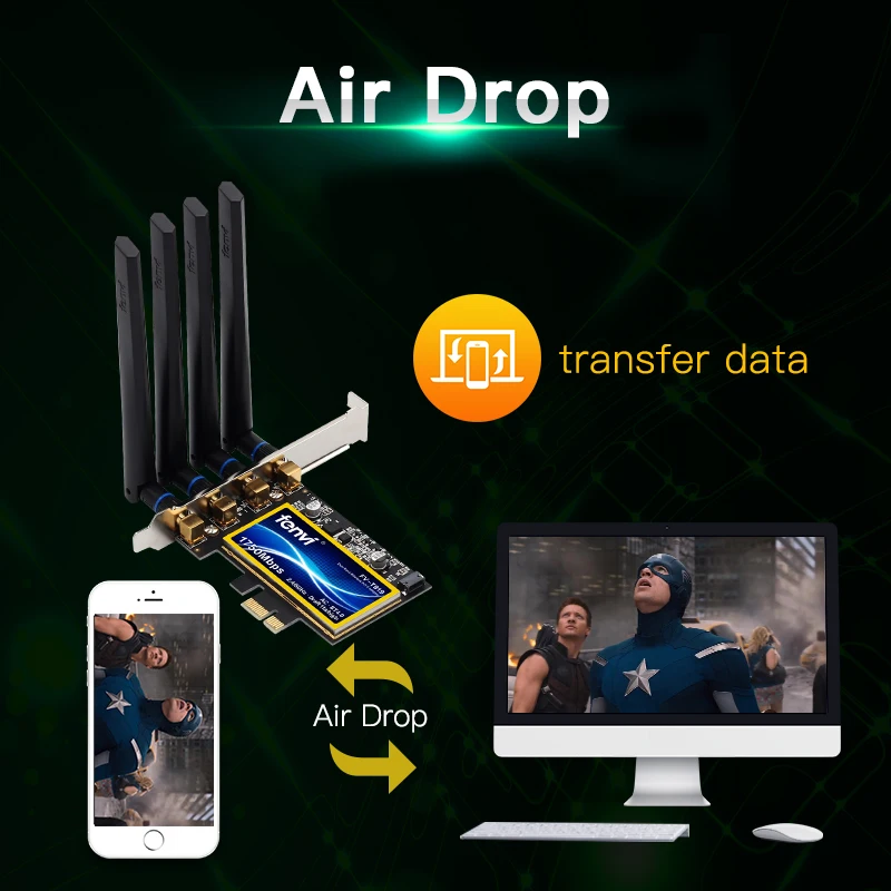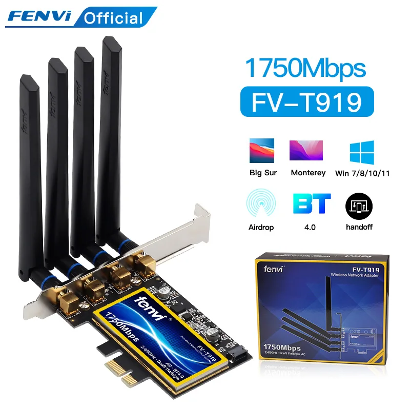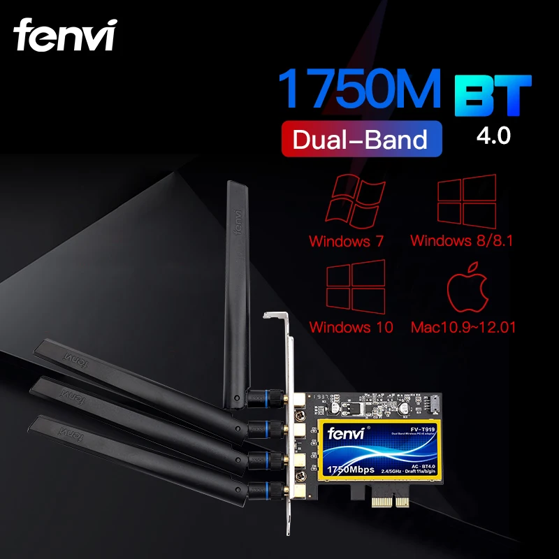 FENVI T919 двухдиапазонный 1750 Мбитс 802.11AC Hackintosh BCM94360 MacOS Bluetooth 4,0 PCI-E Настольный Wi-Fi адаптер Беспроводная сеть Win10