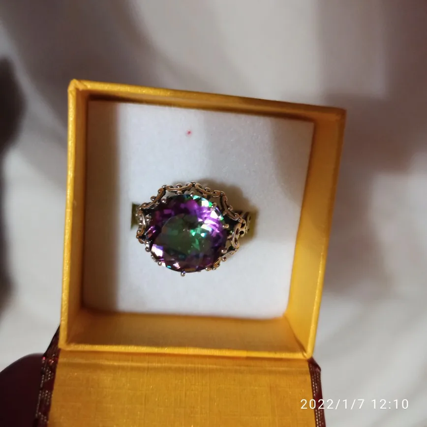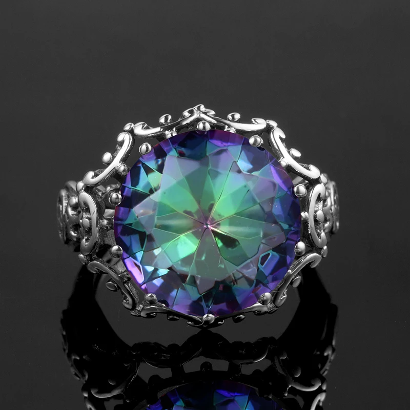 Кольцо женское из серебра 925 пробы с мистическим радужным топазом