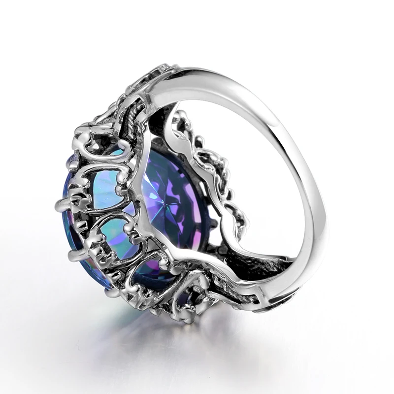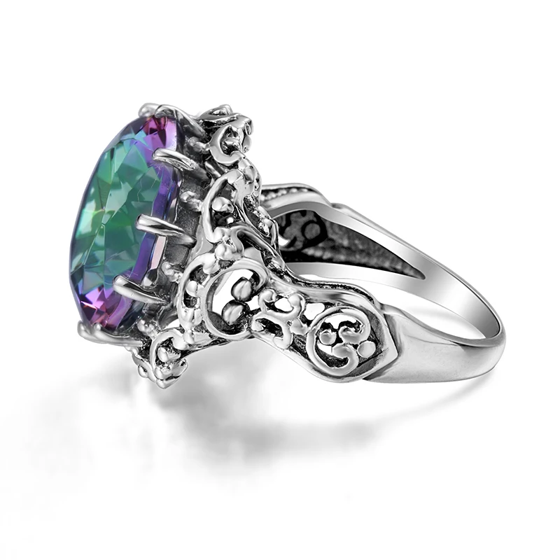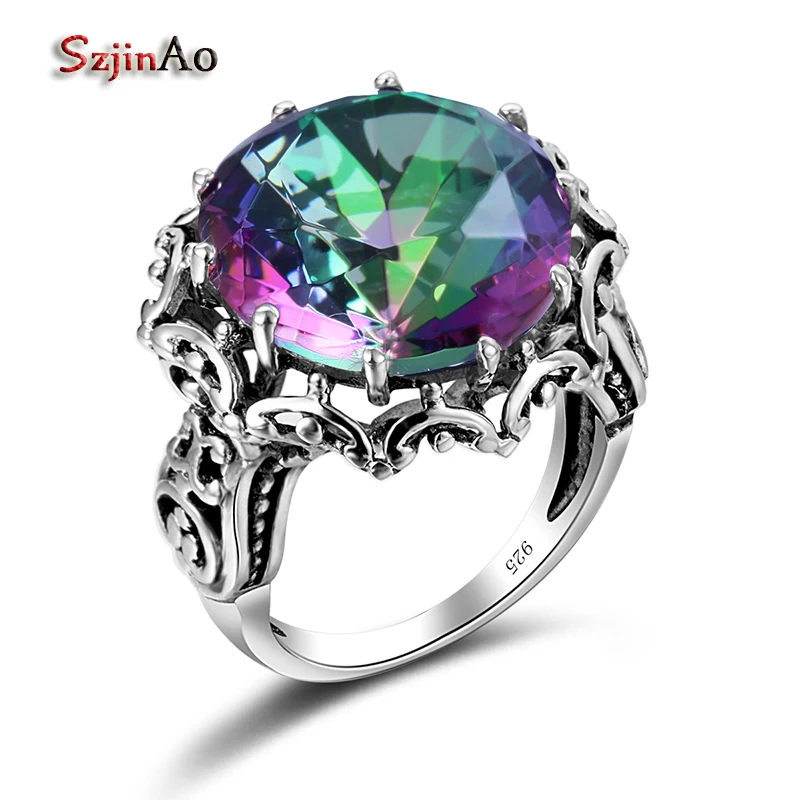 Szjinao большой Радуга Мистический топаз, кольца для женщин, настоящее 925 стерлингового серебра для свадьбы, помолвки, украшенное цветочными лепестками, в богемном стиле, хорошее ювелирное изделие