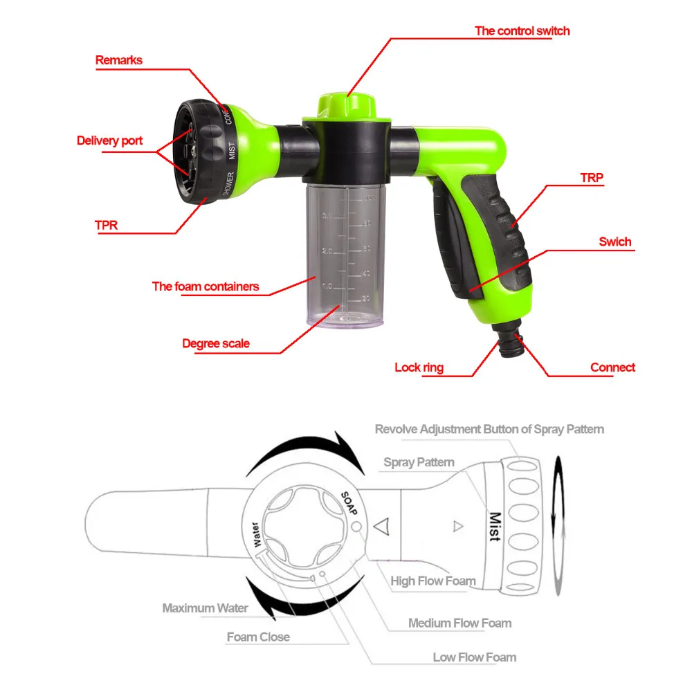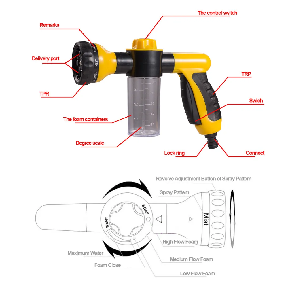 Многоразовый водный пистолет для полива сада, распылитель высокого давления, многофункциональная поролоновая водяная пушка, мойка для чистки автомобиля, дома