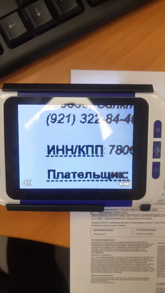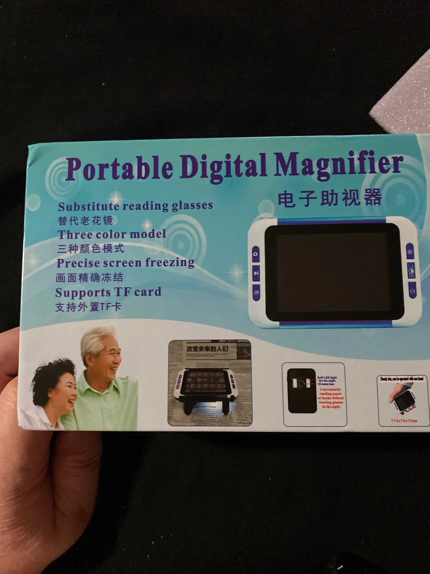 Доставка 2 месяца. Был открыт спор. Продавец был на связи. Лупа работает. Но надо привыкнуть, передвигать по тексту. Увеличение хорошее. Но чем больше увеличении зернистость есть. Зарядное устройство в комплекте. Лупа увеличивает только при расстоянии не более 5 см от текста