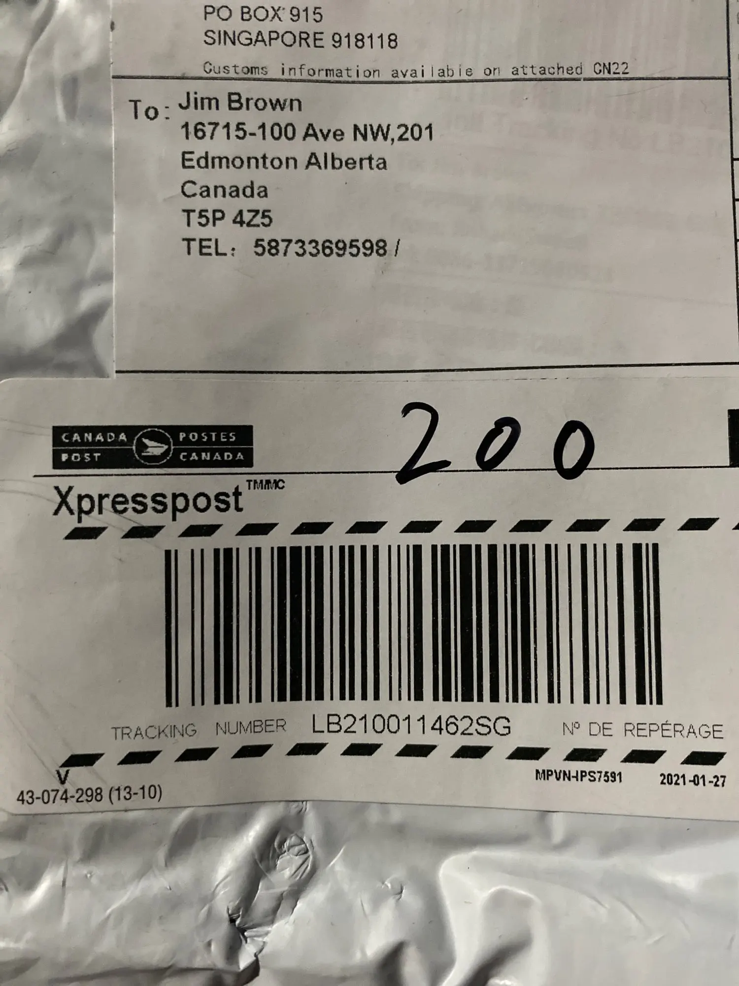 Страна: CH Доставка: Singapore Post 03.04.2021