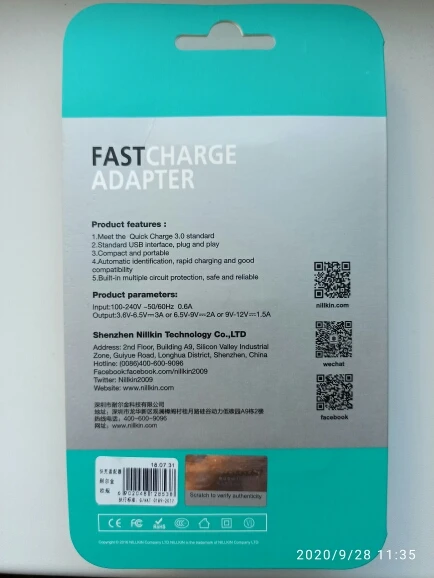 Nillkin QC 3,0 USB зарядное устройство для телефона 3A быстрое зарядное устройство США, ЕС, Великобритании зарядное устройство USB настенное зарядное устройство для телефона для xiaomi OnePlus 7 адаптер переменного тока