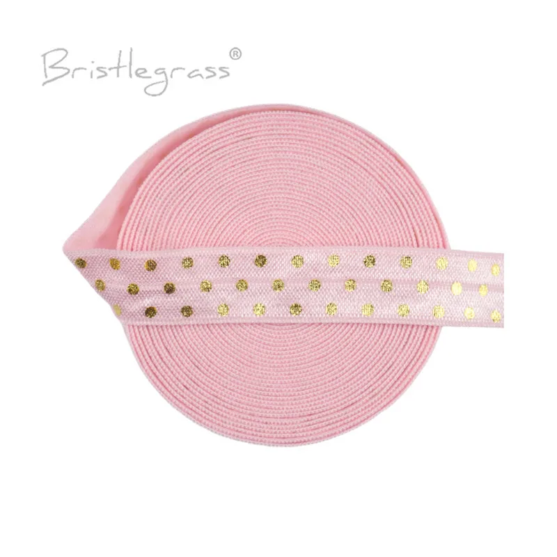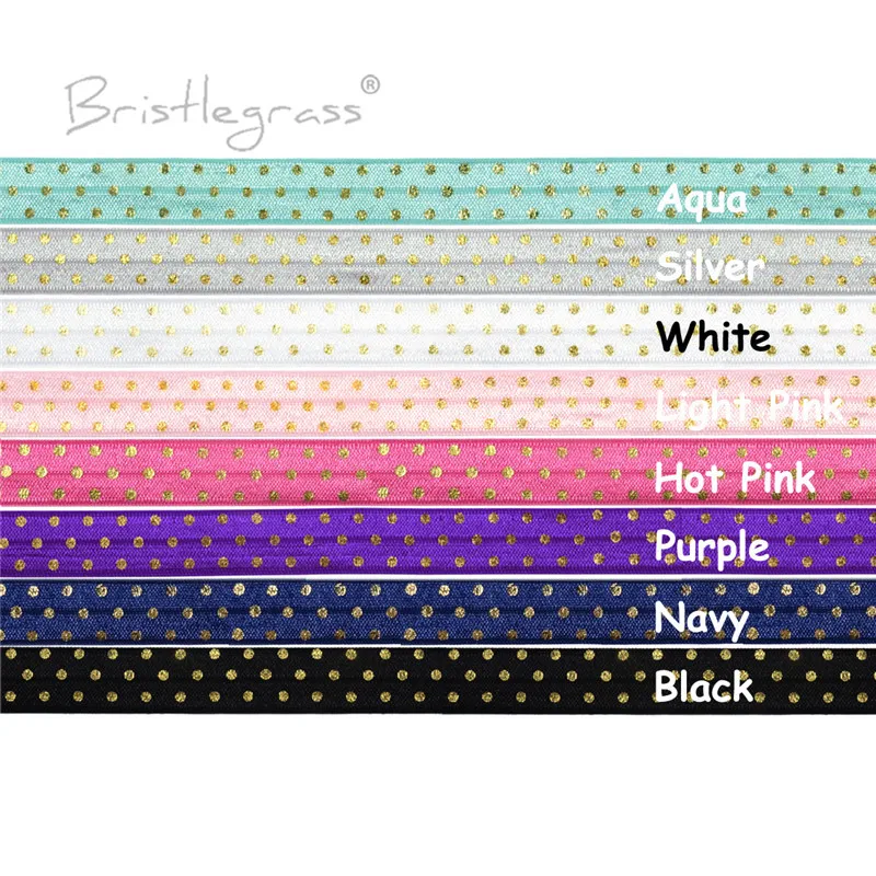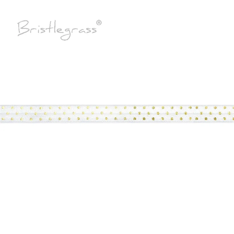 BRISTLEGRASS 5 ярдов 5/8 "15 мм золотой узор в горошек Фольга Печать Белый раскладной эластичный спандекс атласная лента повязка на голову платье-пачка Сделай Сам Шитье