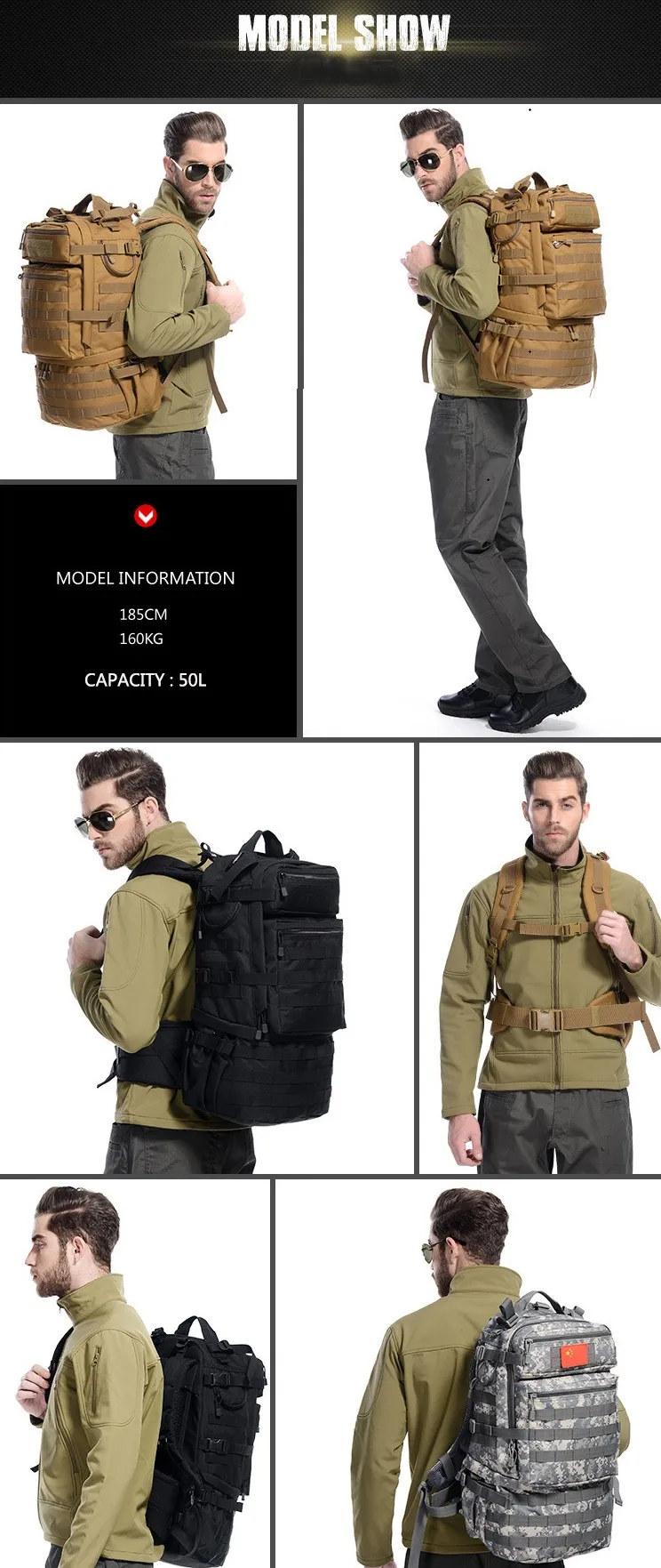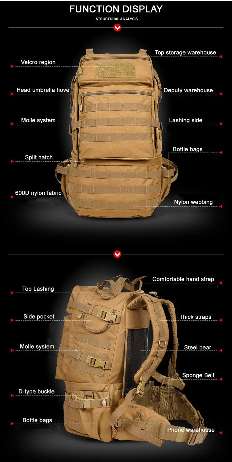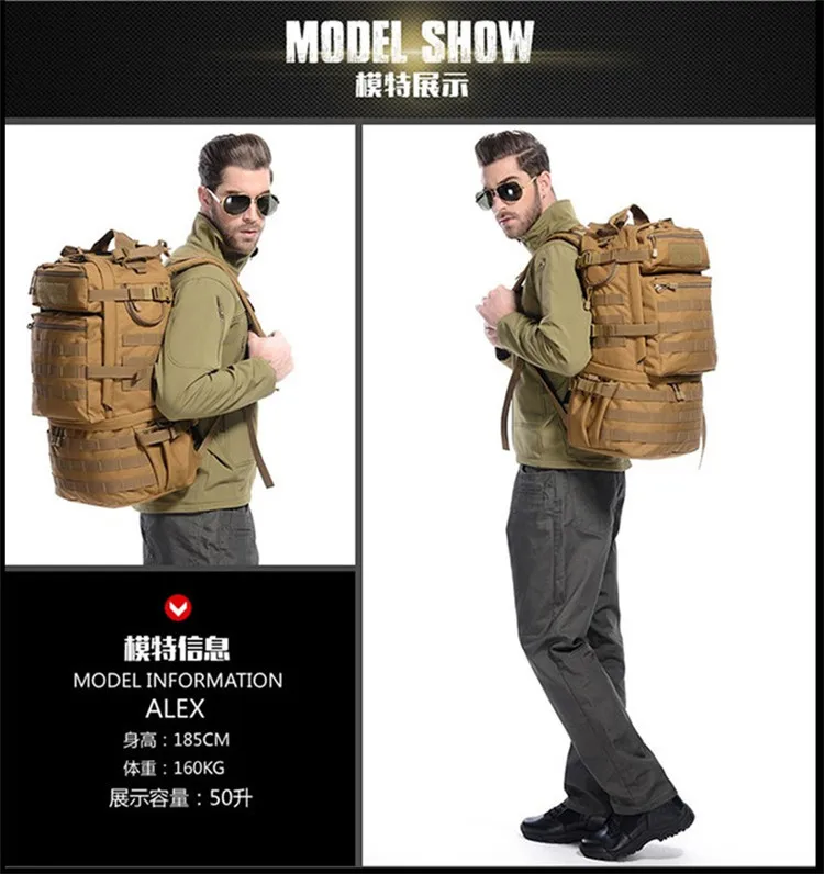 Рюкзак большой вместимости 50 л, дорожная сумка для компьютера, мешок для альпинизма, военная многофункциональная сумка высокого класса для мужчин и женщин