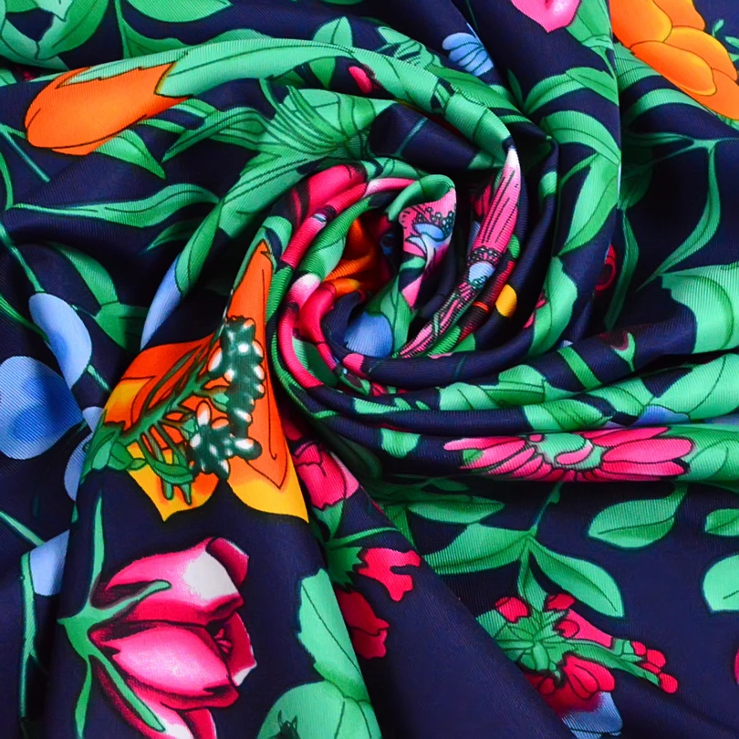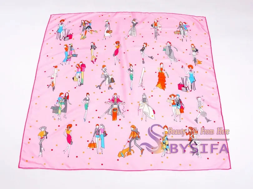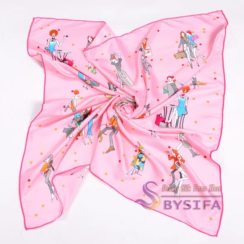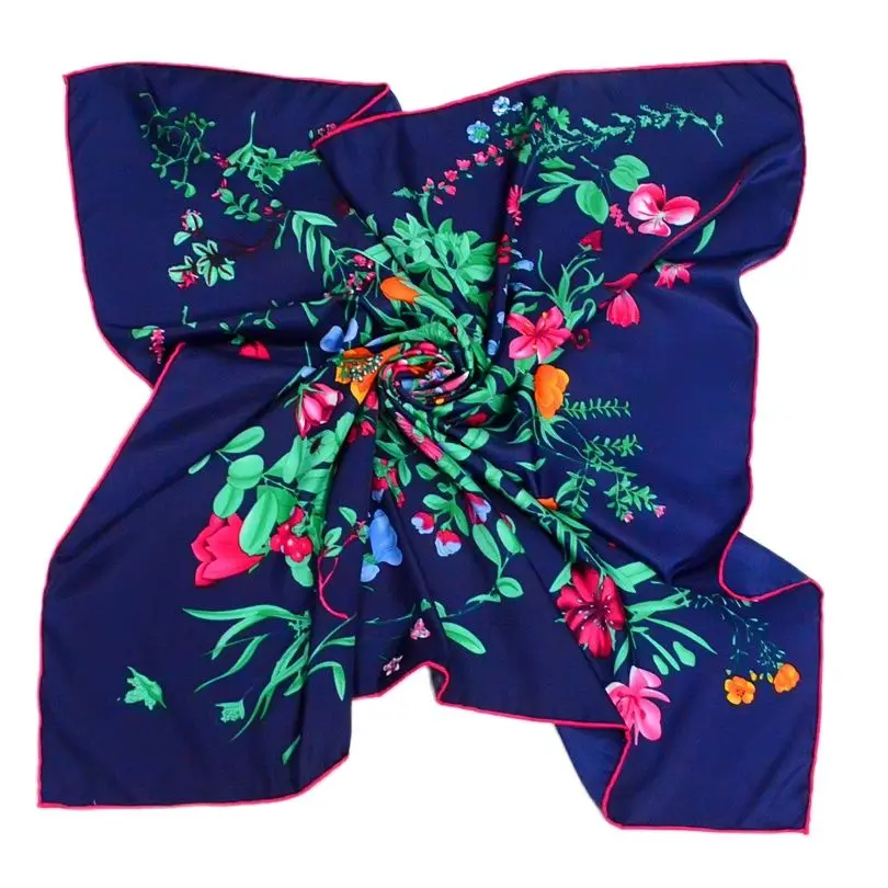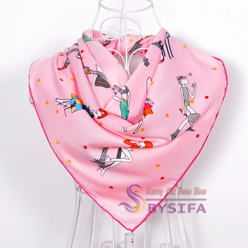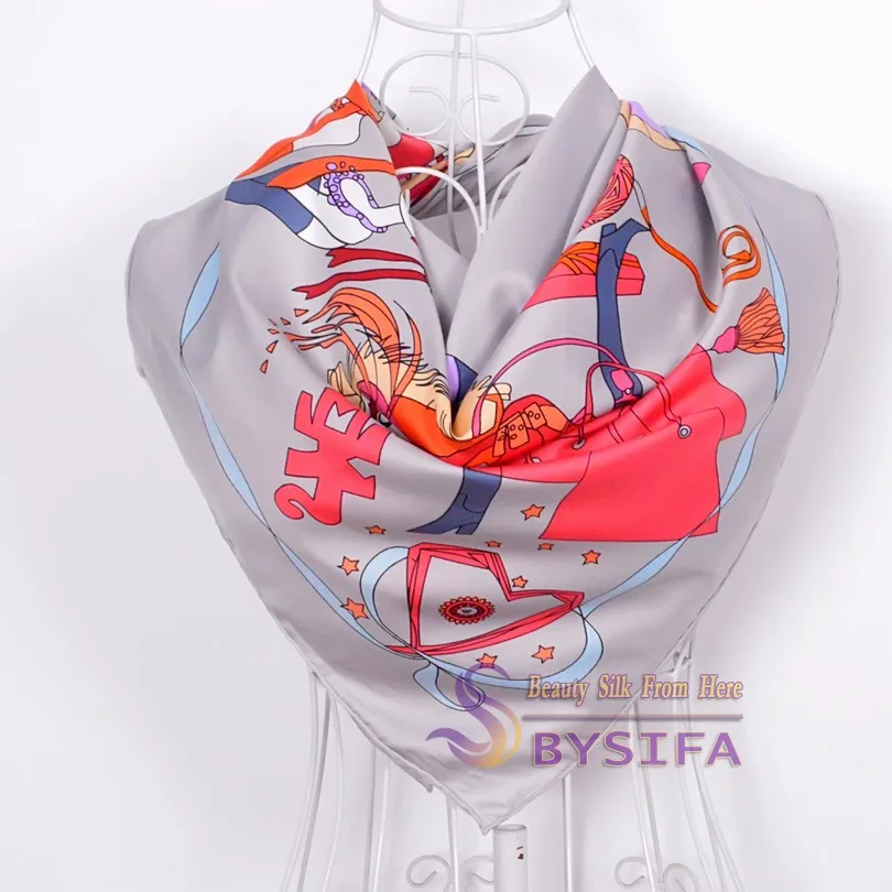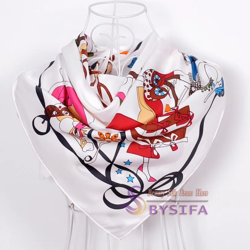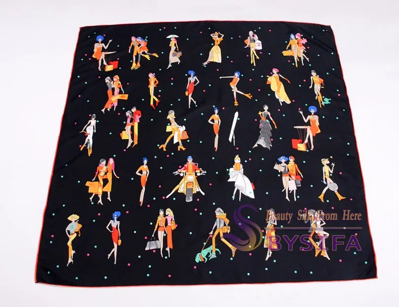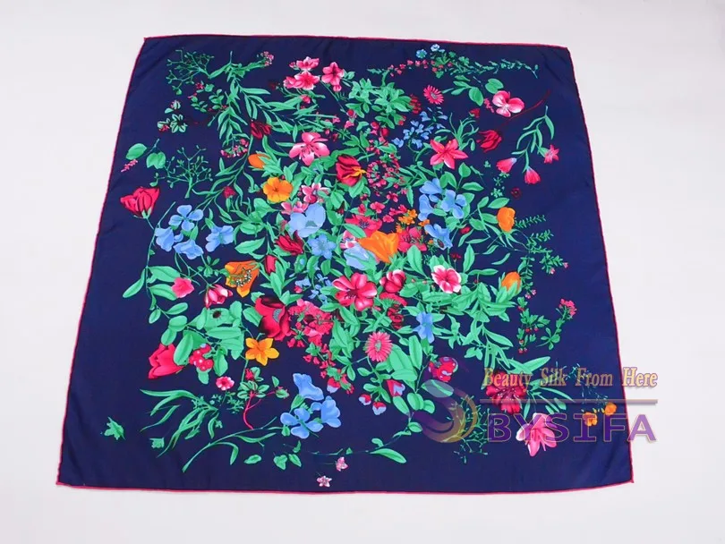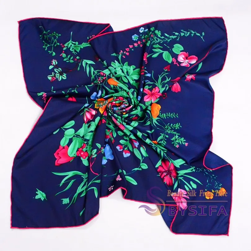 Женский твиловый шарф с буквами BYSIFA, черный квадратный шёлковый шарф-платок с цветочным рисунком, с тонкой ручной окантовкой, 90*90 см, новинка 2016